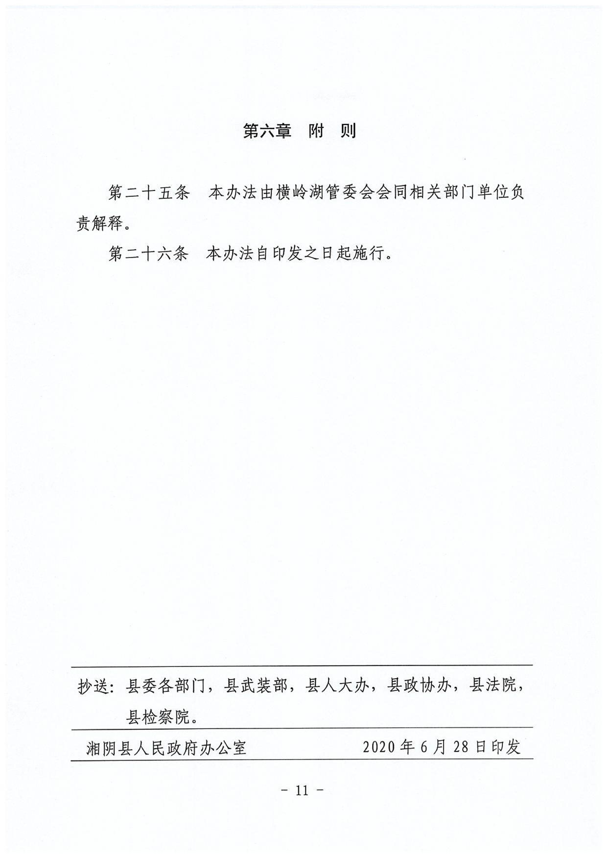 关于印发《湘阴县横岭湖省级保护区管理办法(试行)》的通知