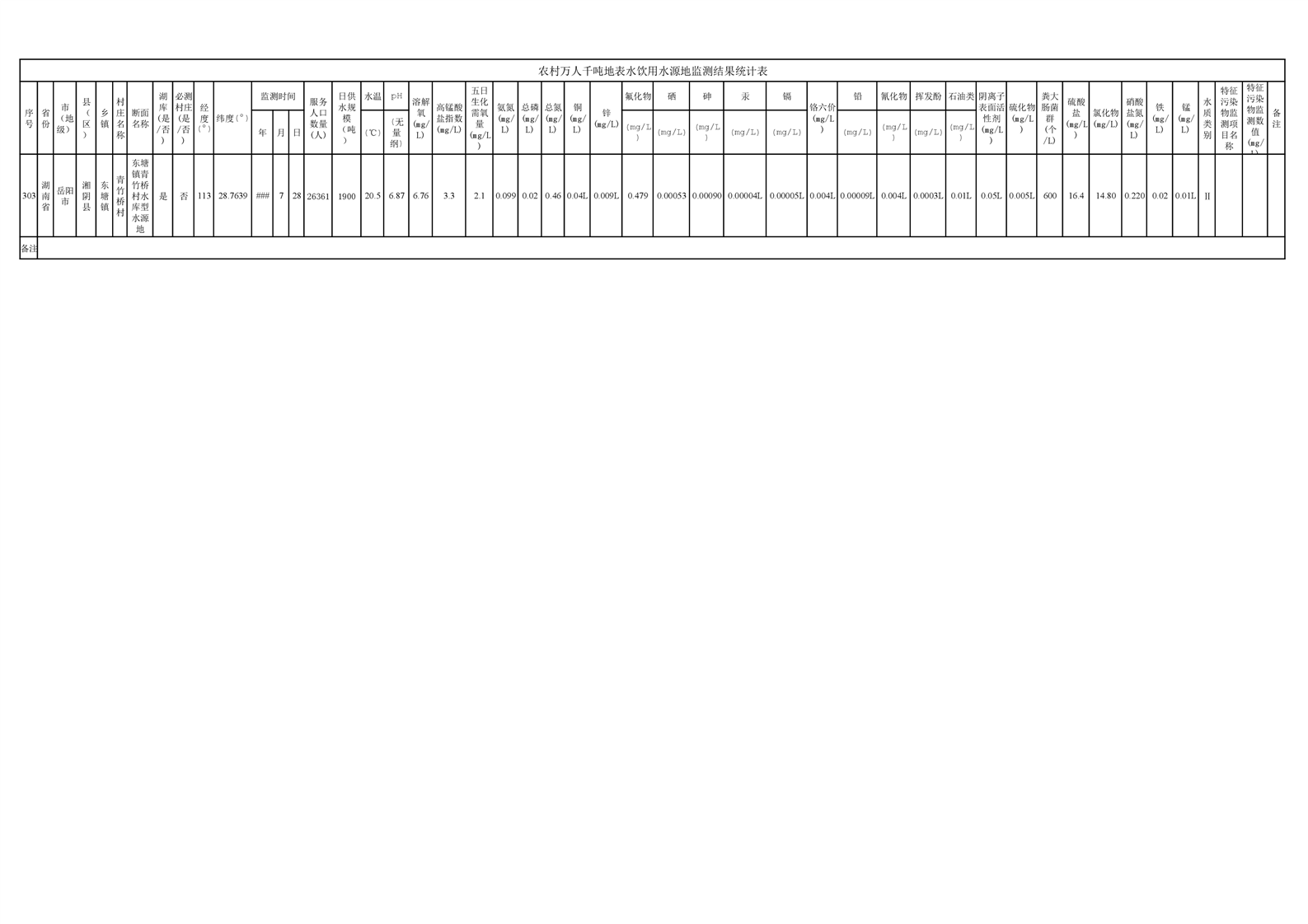 湘阴县2020年3季度-农村万人千吨地表水饮用水源地监测结果统计表