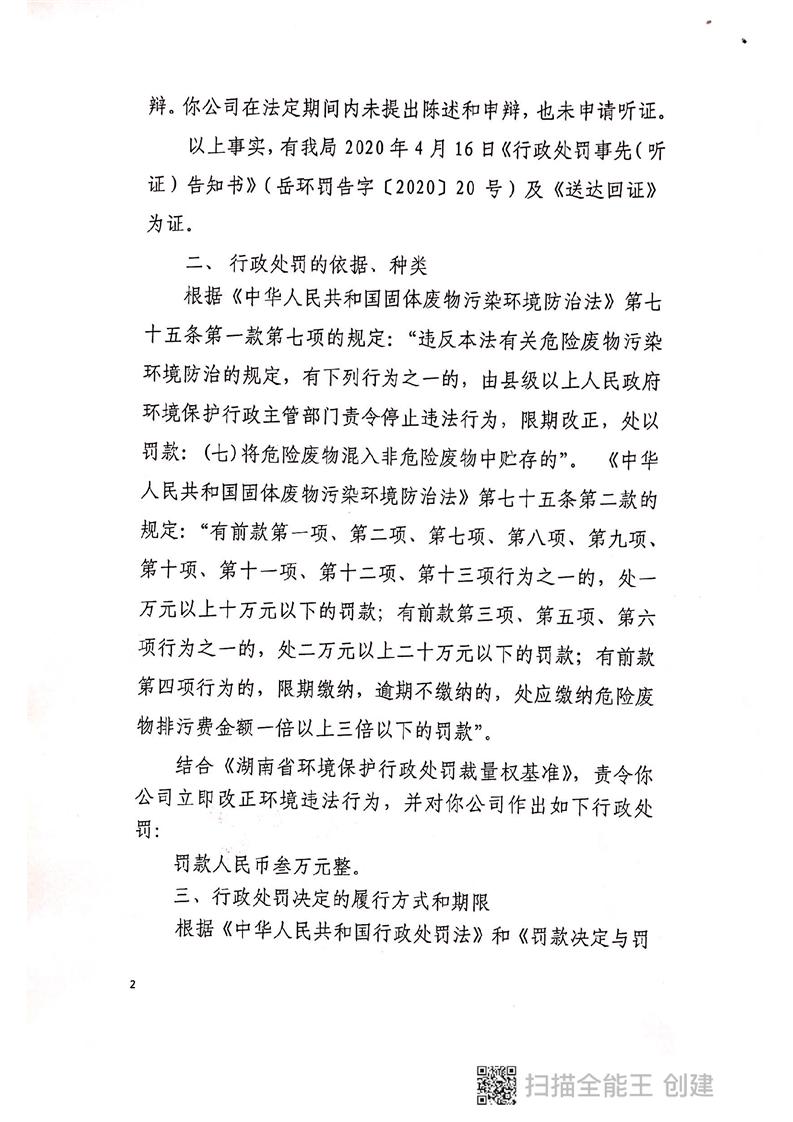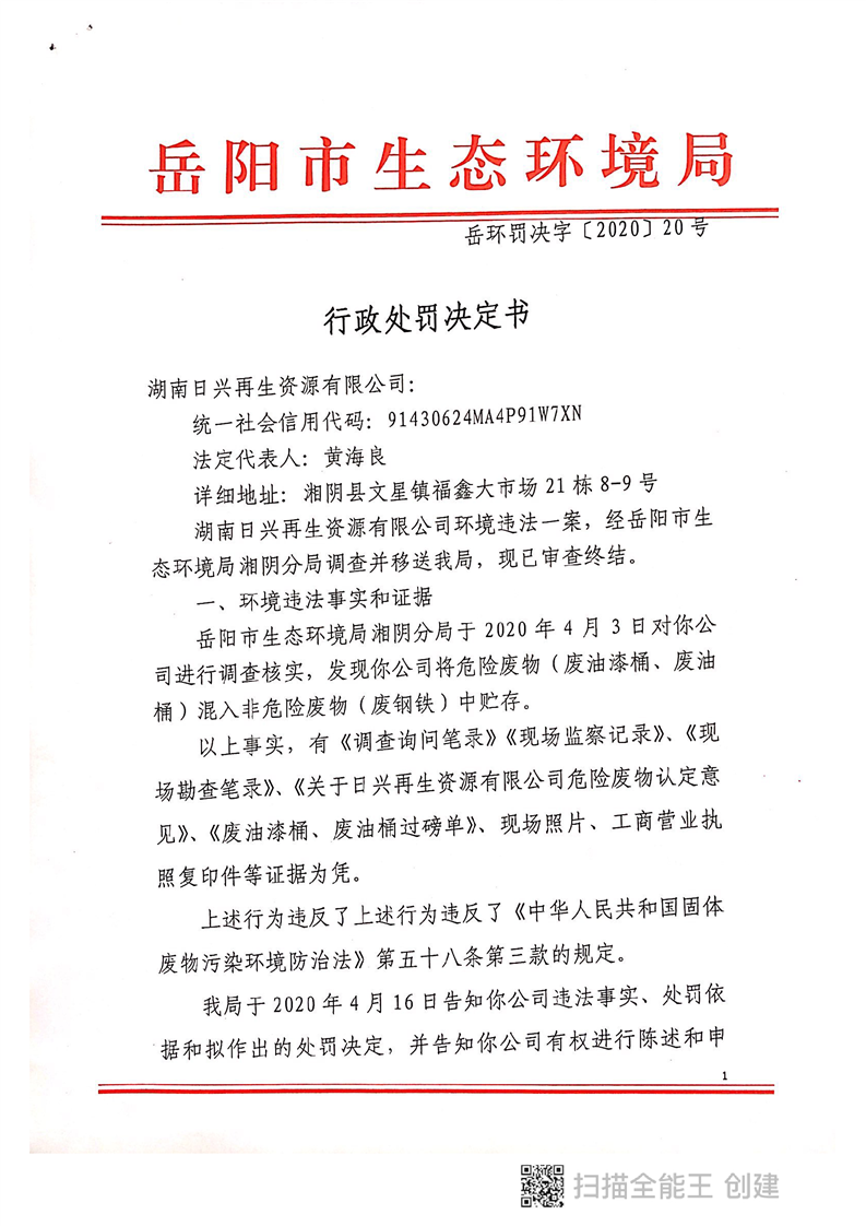 行政处罚决定书(湖南日兴再生资源环境违法案)