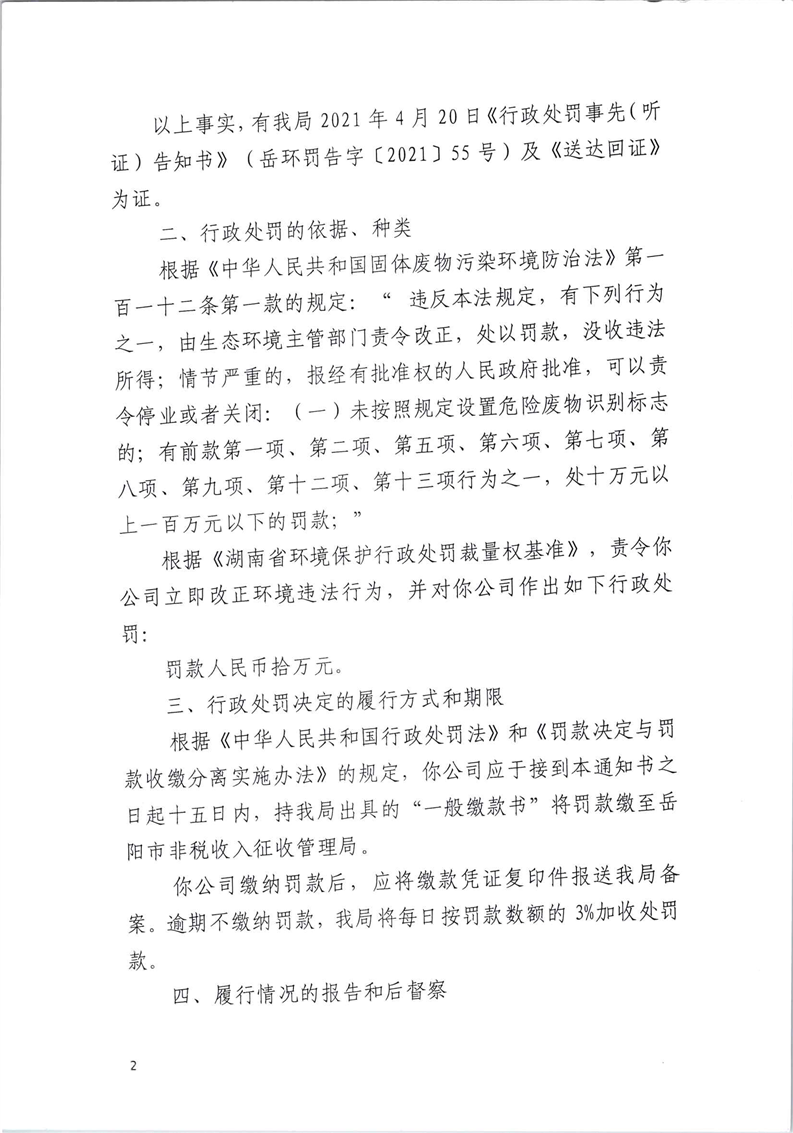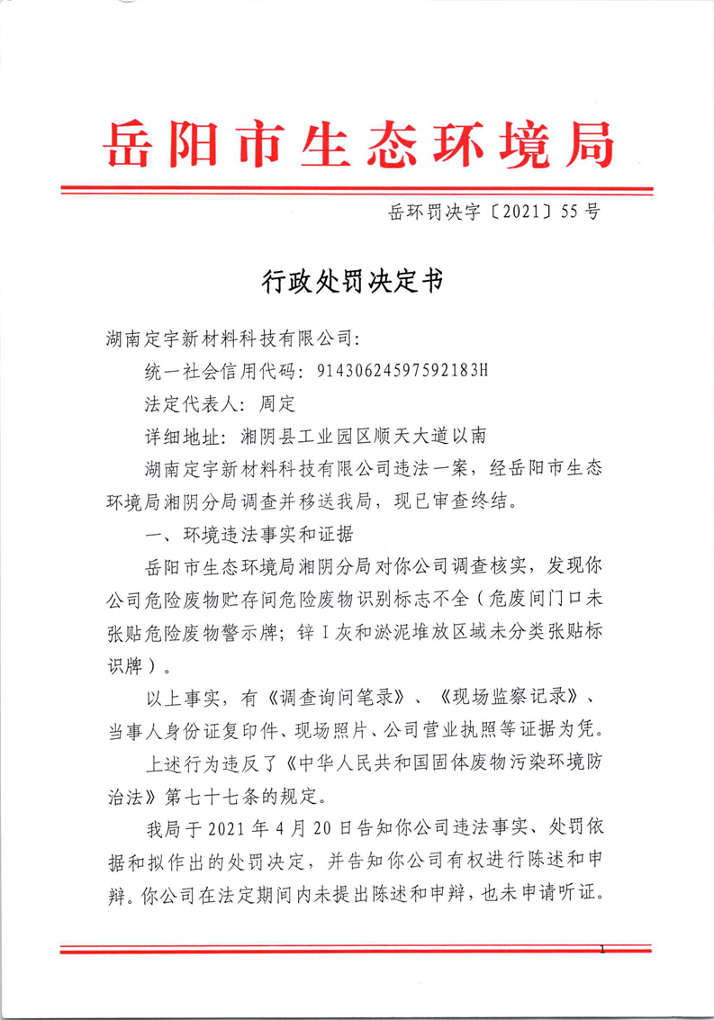 行政处罚决定书(湖南定宇新材料科技有限公司)