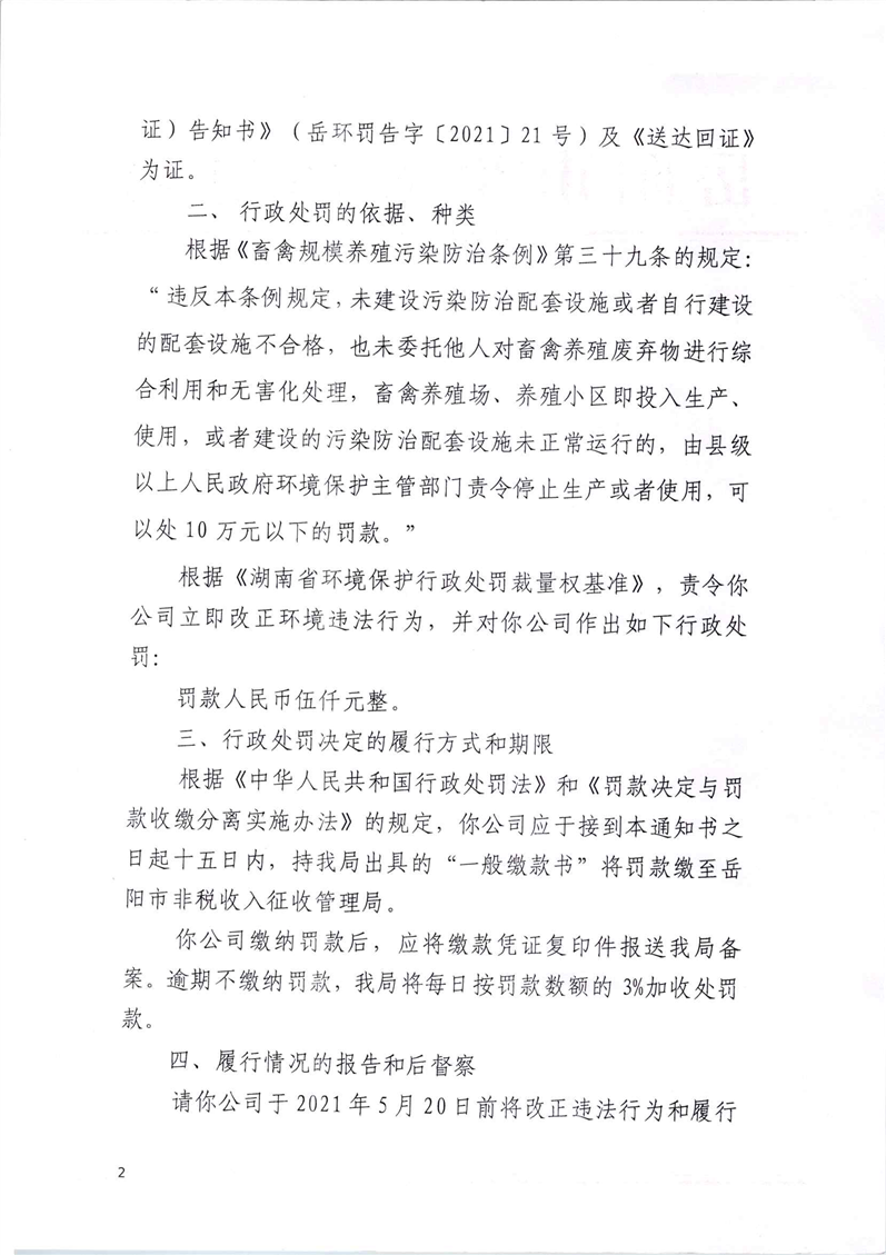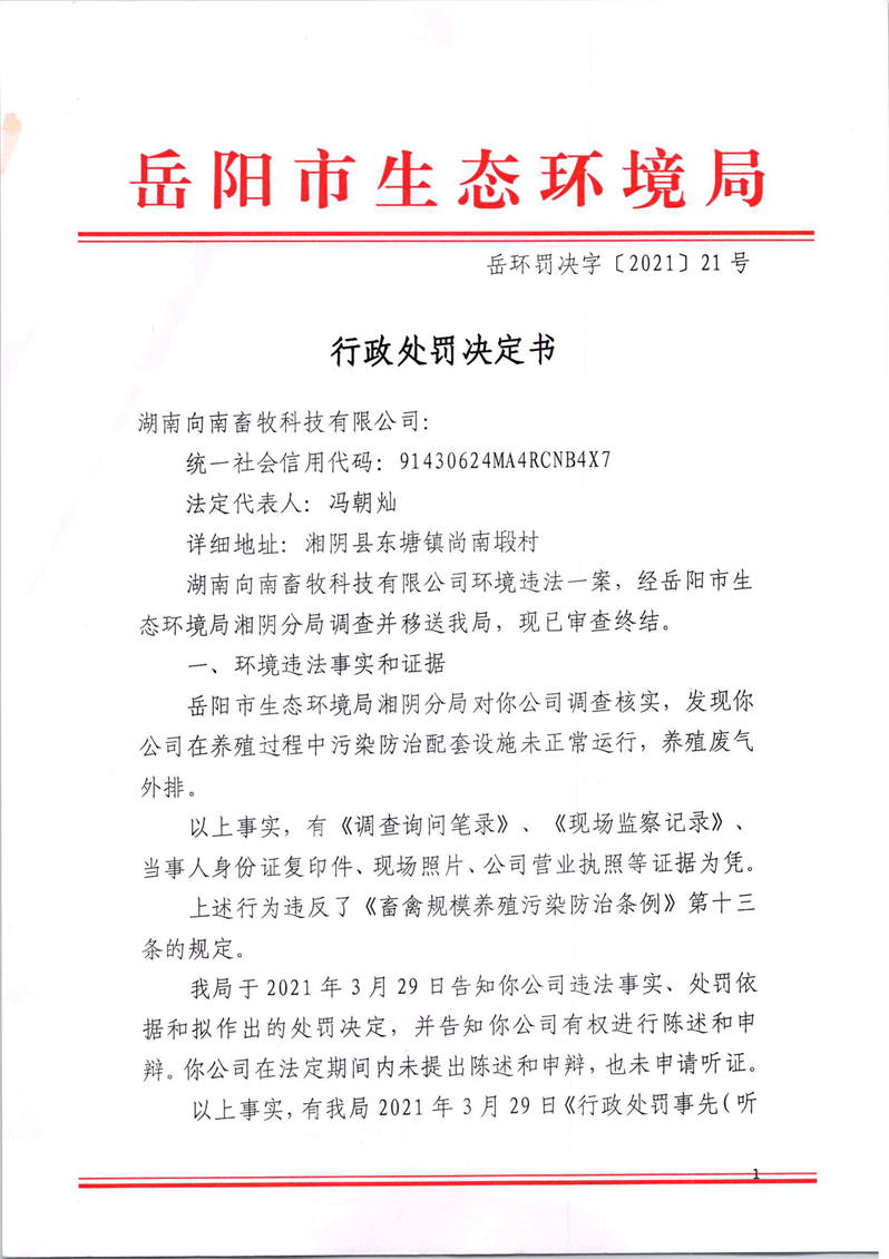 行政处罚决定书(湖南向南畜牧科技有限公司)