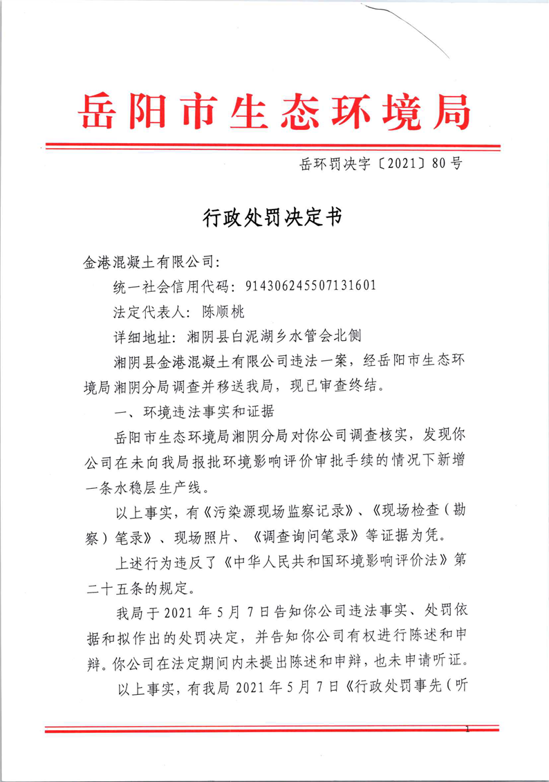 行政处罚决定书(金港混凝土有限公司)