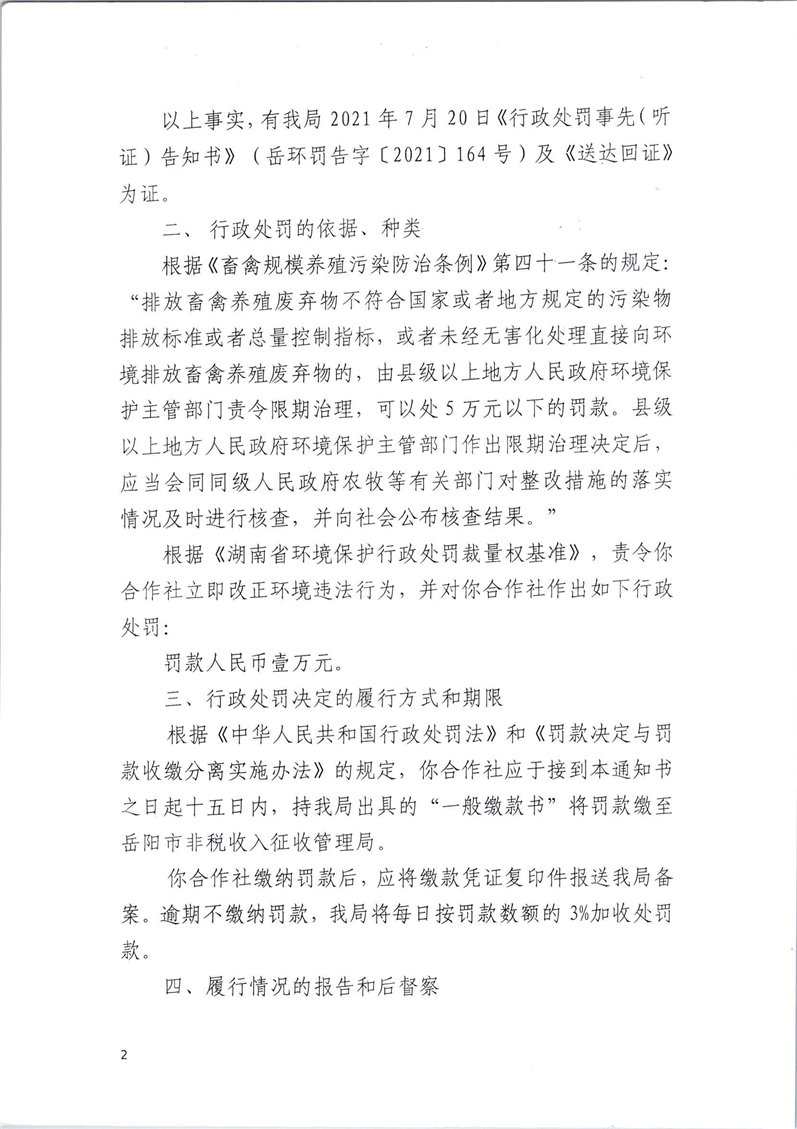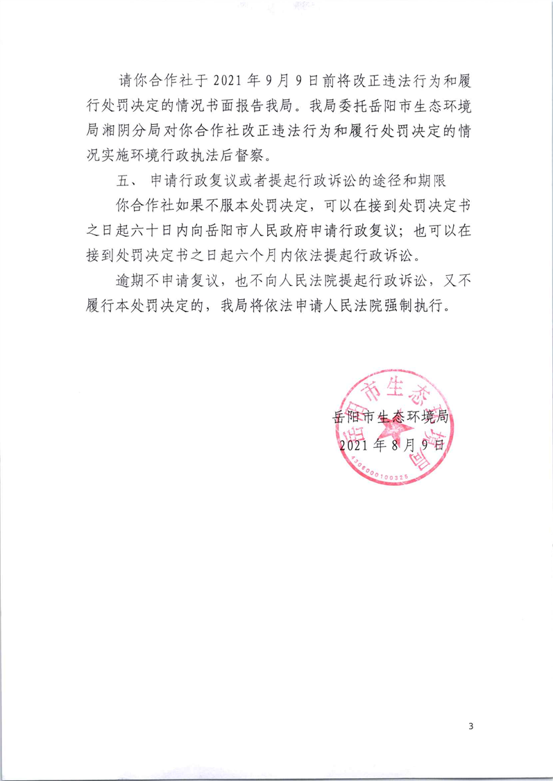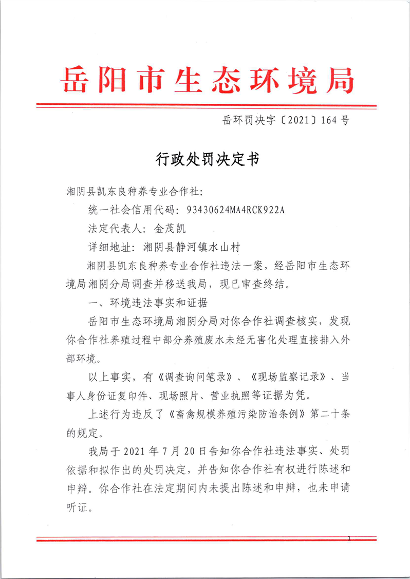 行政处罚决定书(湘阴县凯东良钟养专业合作社)