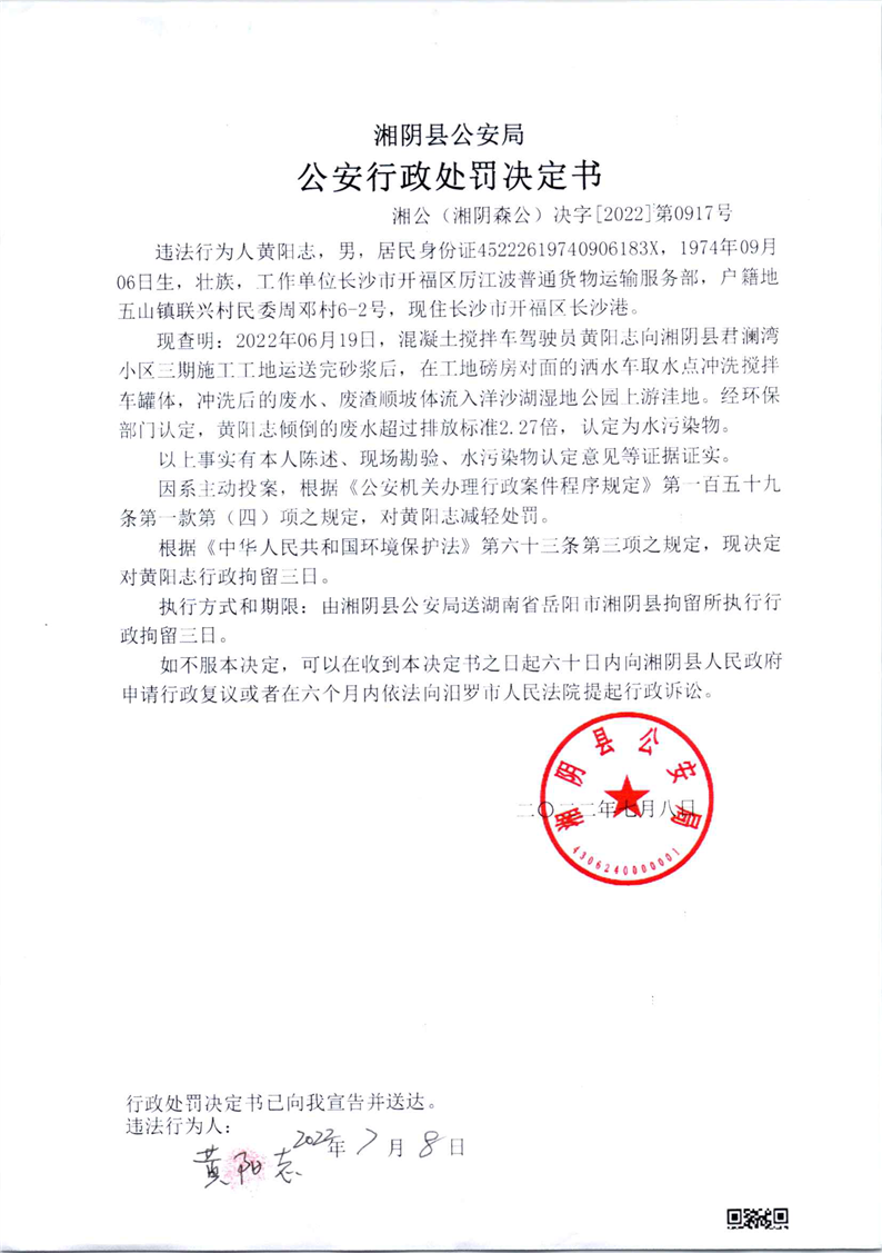 公安行政处罚决定书 湘公(湘阴森公)决字【2022】第0917号