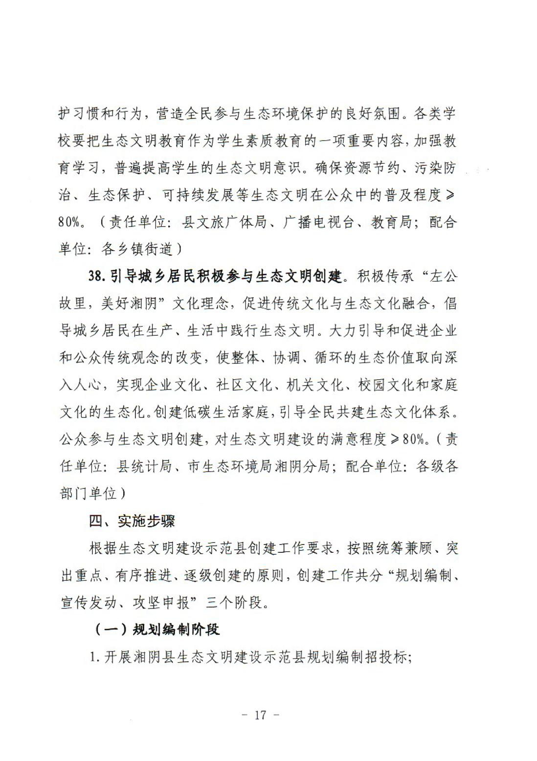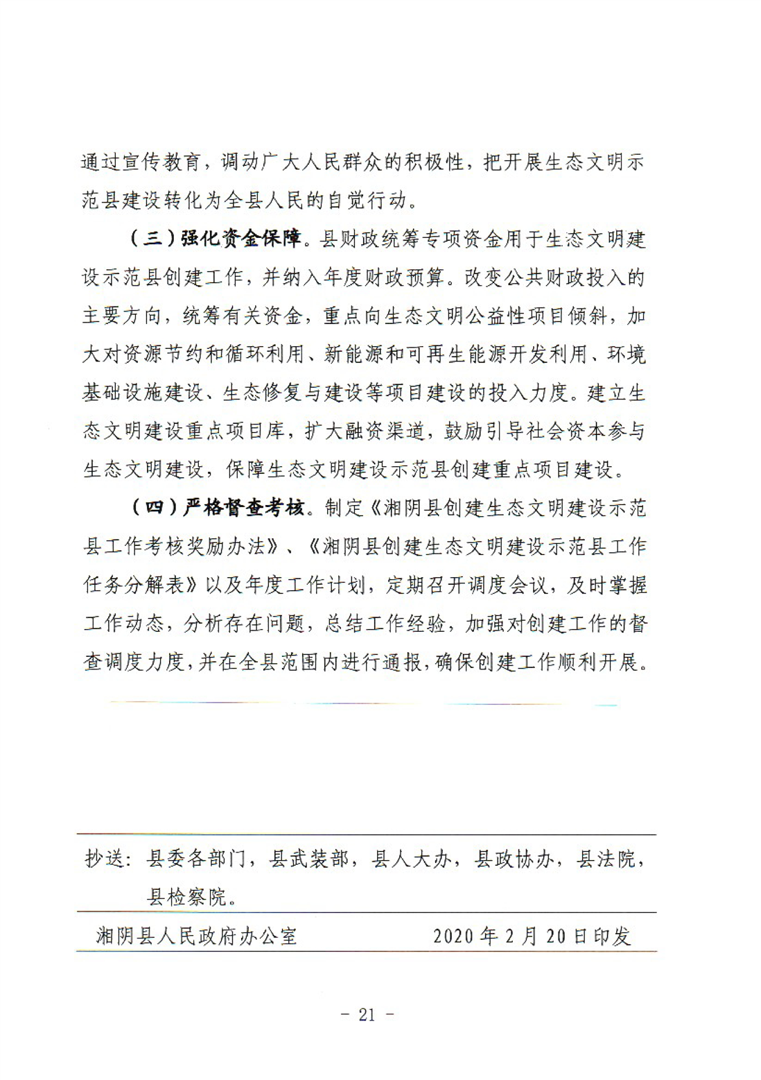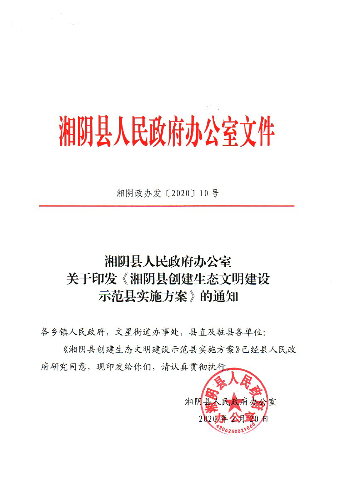 关于印发《湘阴县创建生态文明建设示范县实施方案》的通知