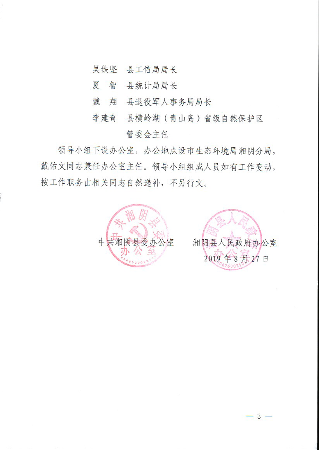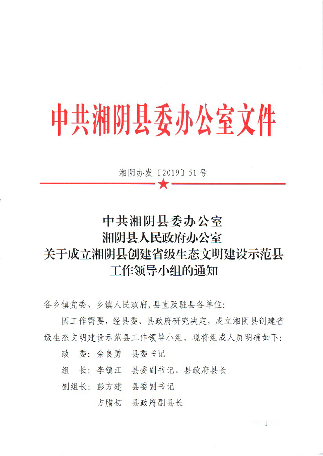 关于成立湘阴县创建省级生态文明建设示范县工作领导小组的通知