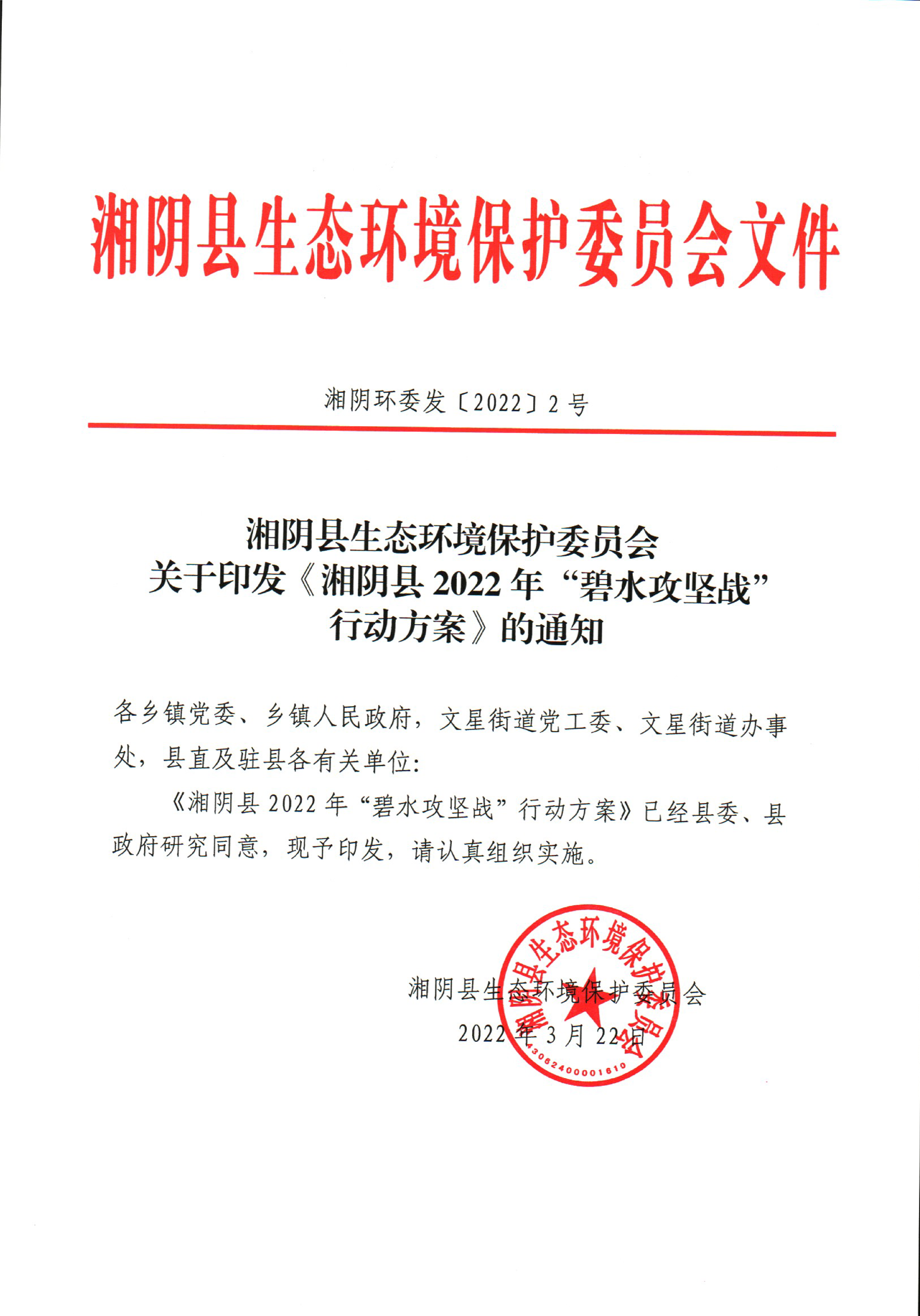 湘阴县生态环境保护委员会关于印发《湘阴县2022年“碧水攻坚战”行动方案》的通知