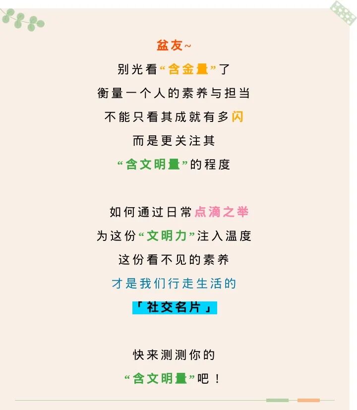 别光看“含金量”了,快来测测你的“含文明量”!
