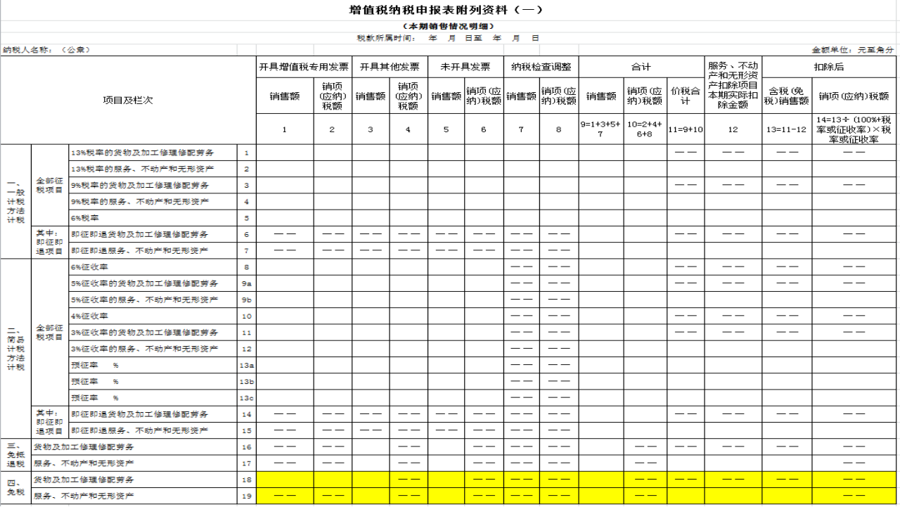 答:1、在当期《增值税纳税申报表(一般纳税人适用)》的《增值税纳税申报表附列资料(一)》第18栏、第19栏相关列次,填报免税销售额。