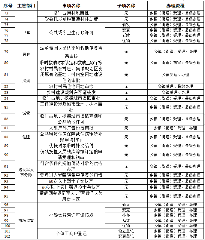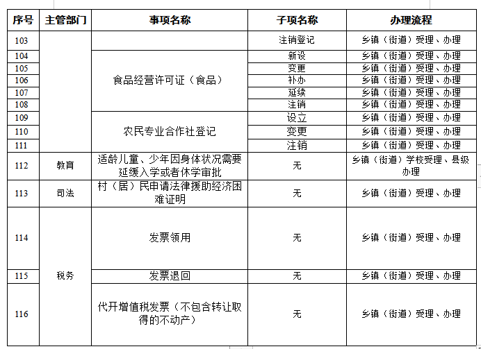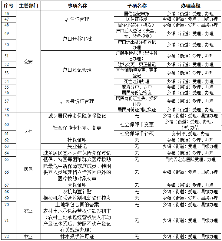 湘阴县实施基层公共服务(一门式)乡镇(街道)事项清单(共71项)