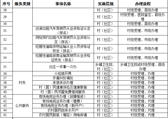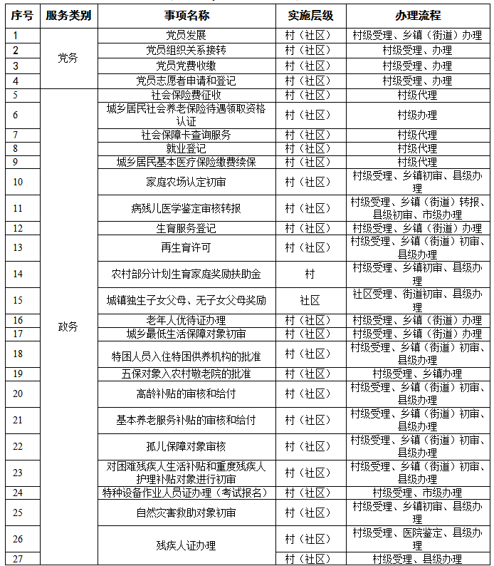 湘阴县实施基层公共服务(一门式)村(社区)事项清单(共45项)