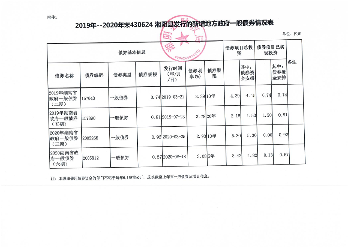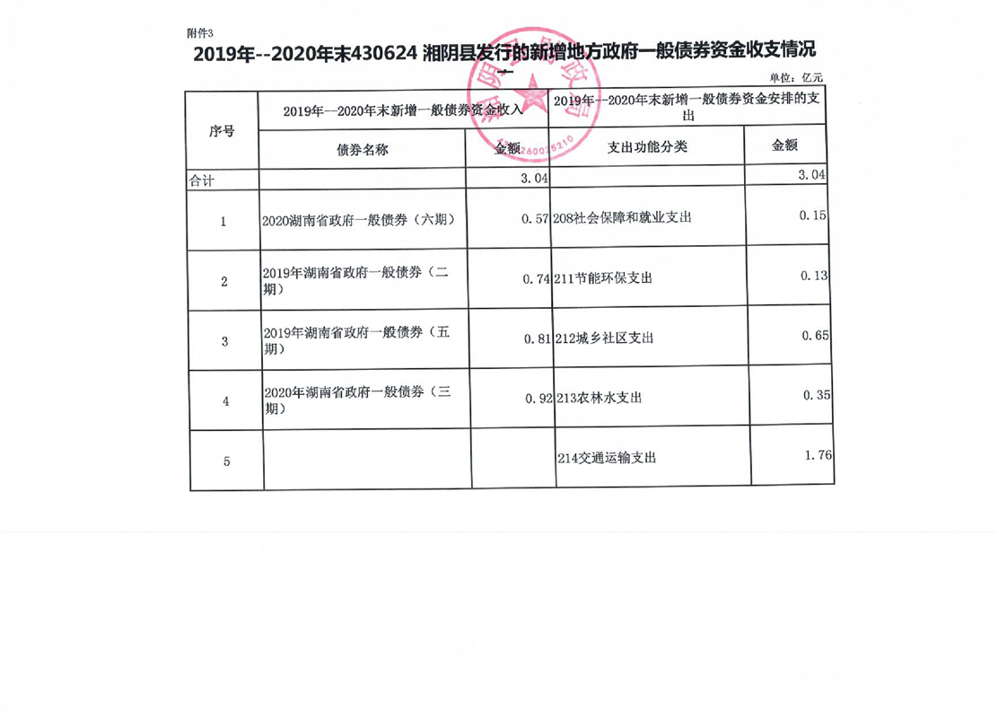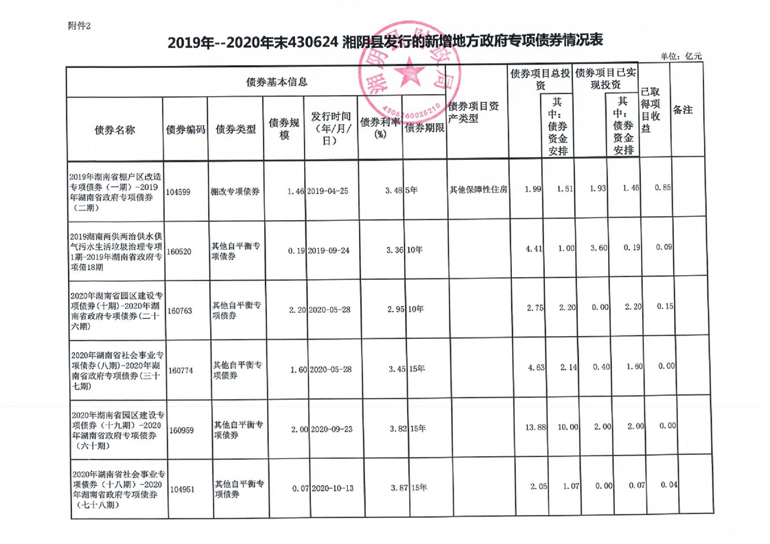 湘阴县2021年新增政府债券存续期信息公开