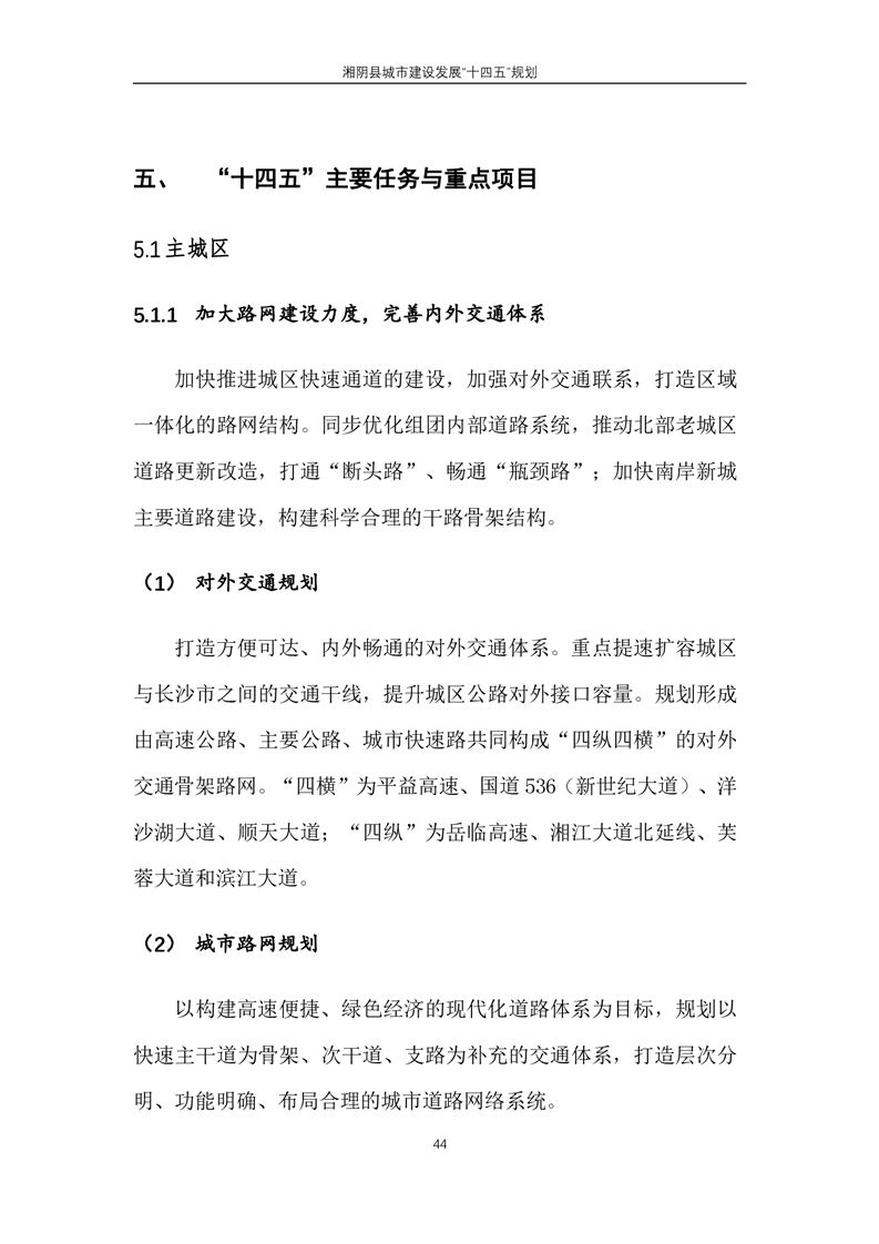 湘阴县城市建设发展“十四五”规划 (2021—2025年)
