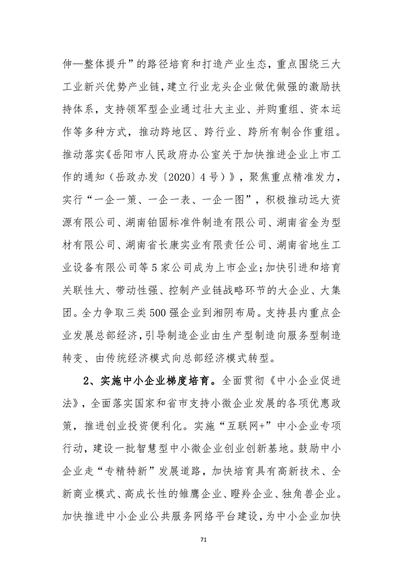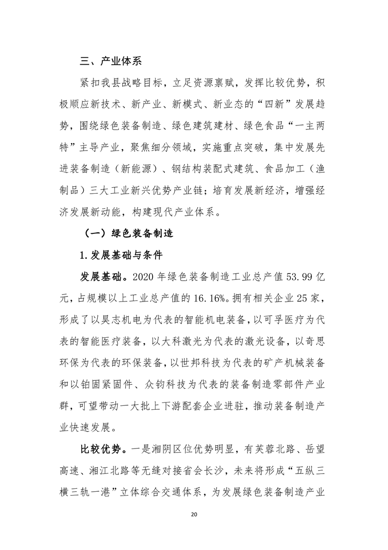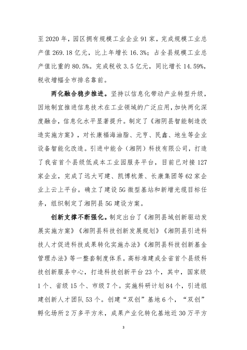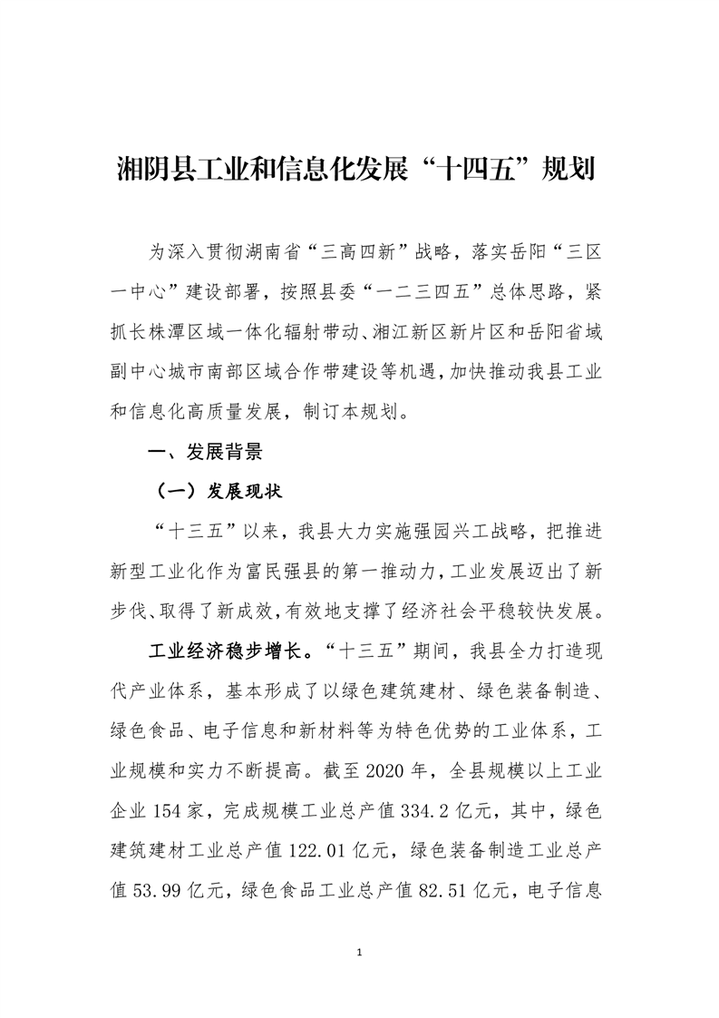 湘阴县工业和信息化发展 “十四五”规划