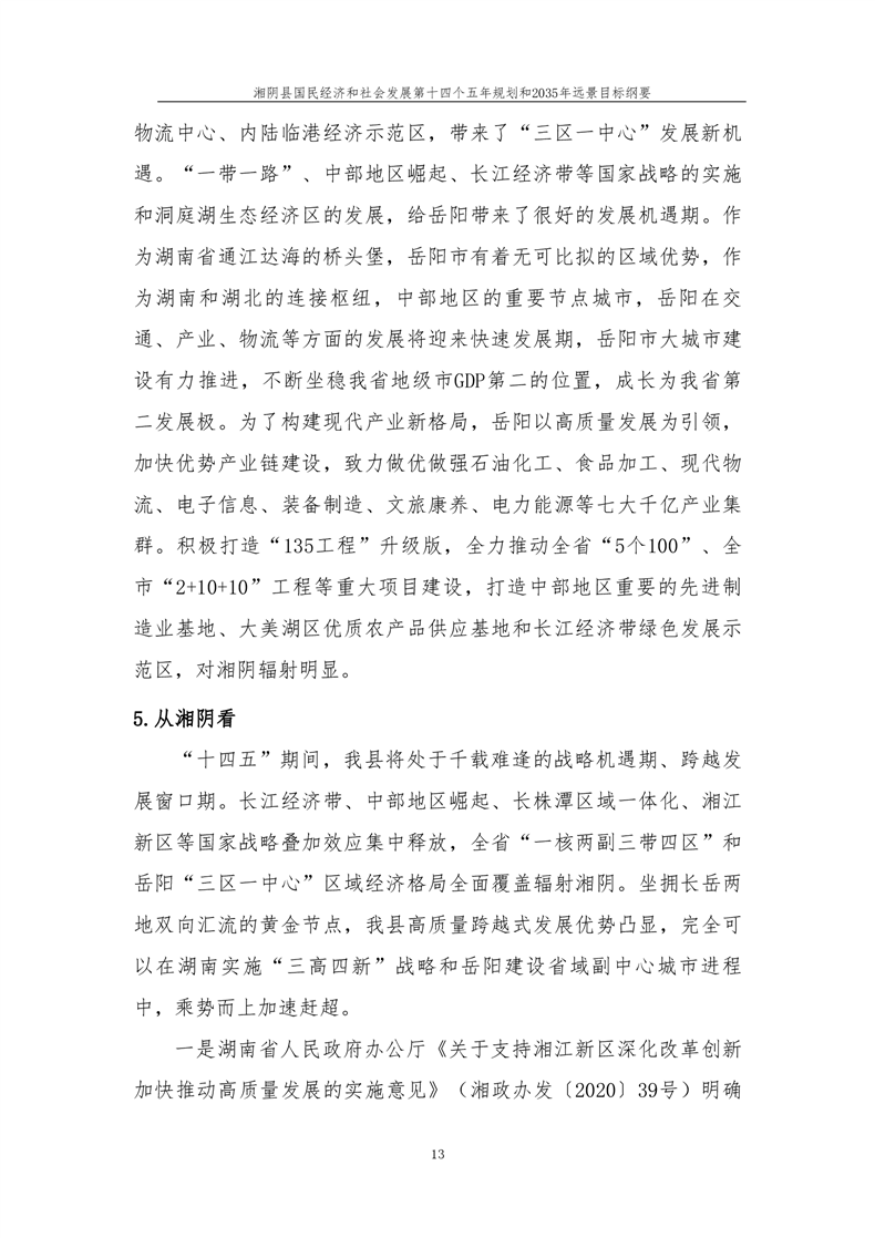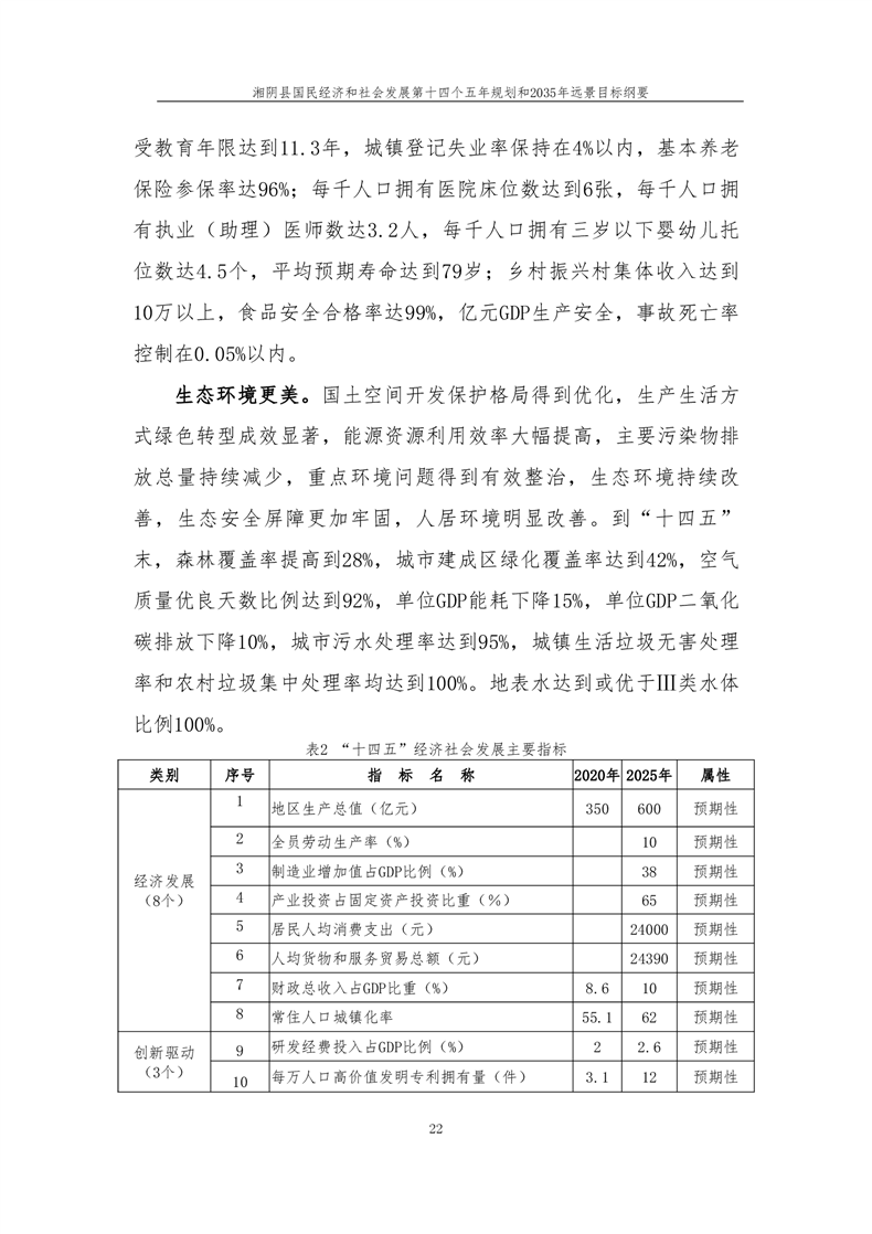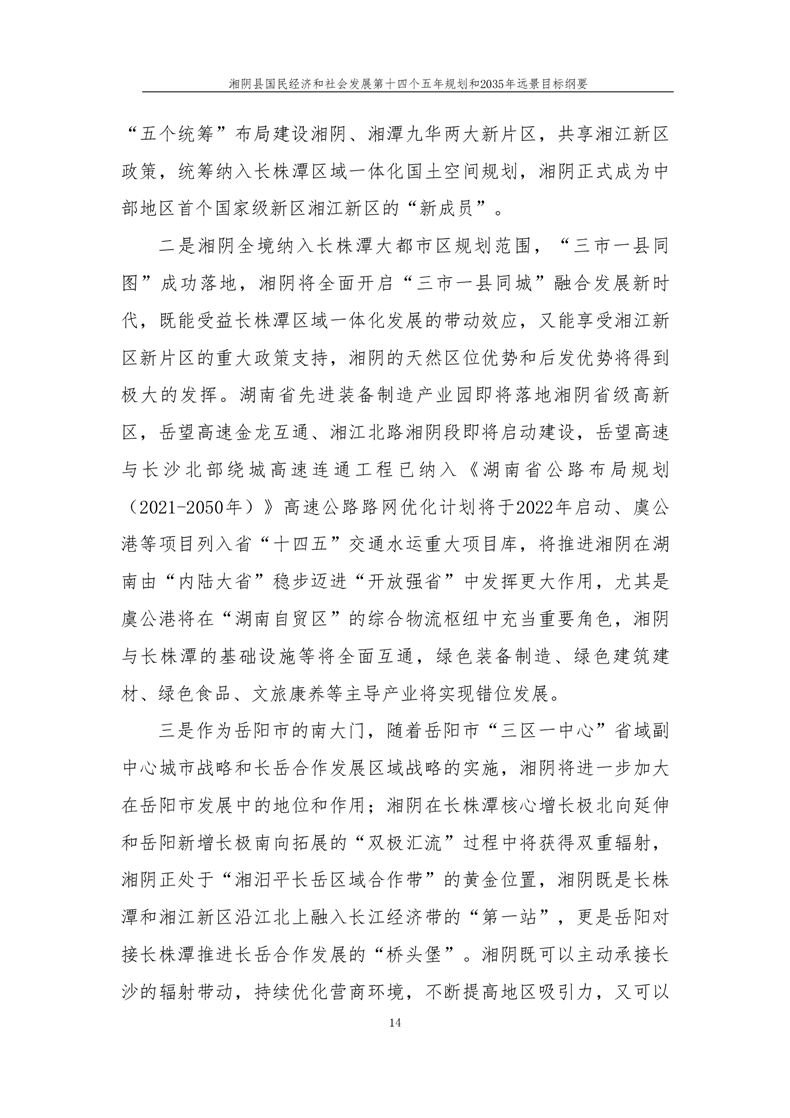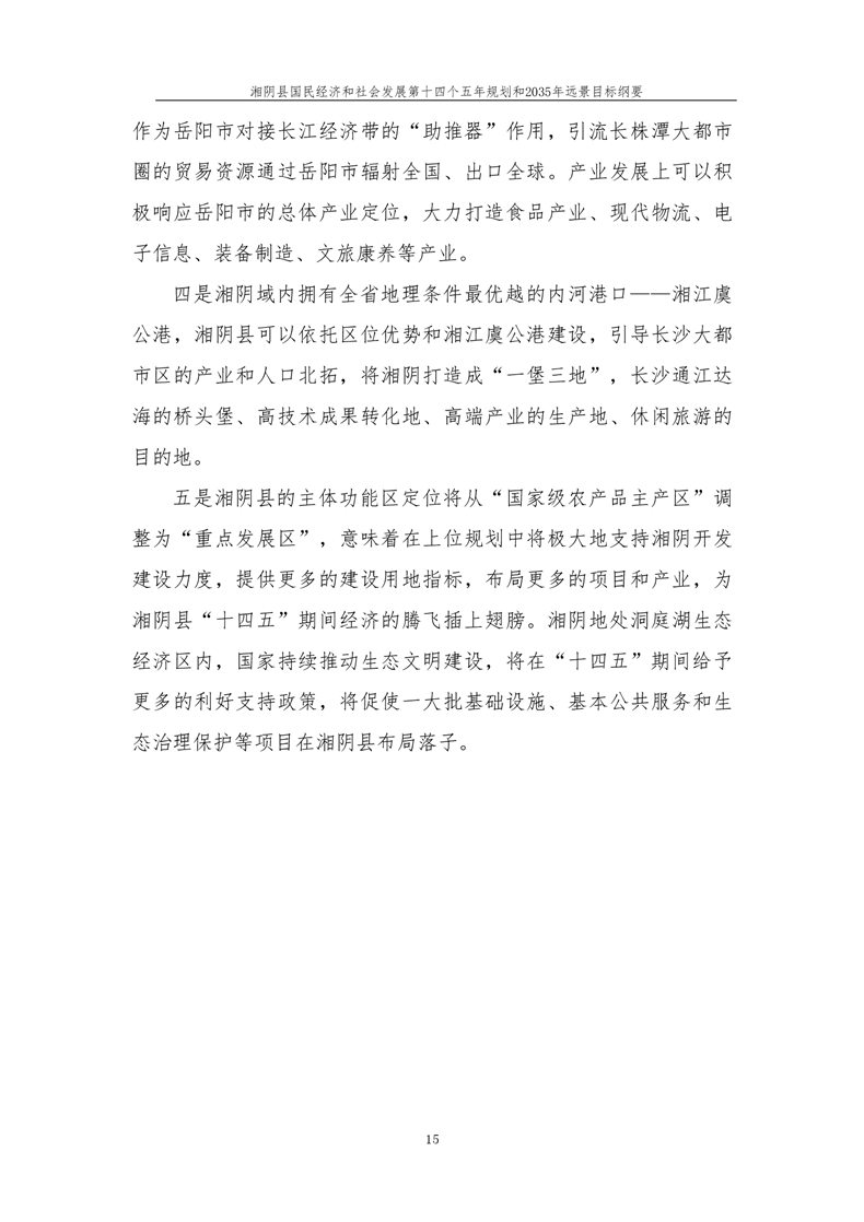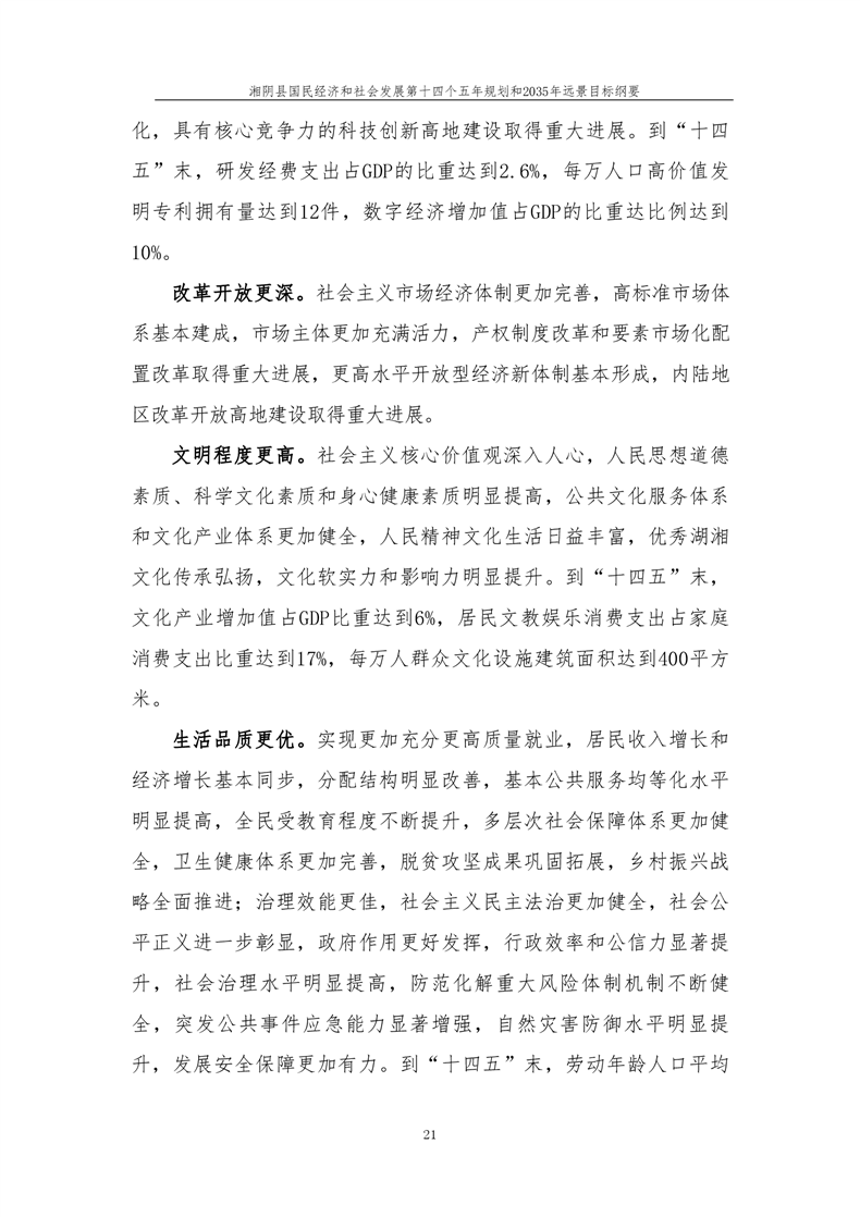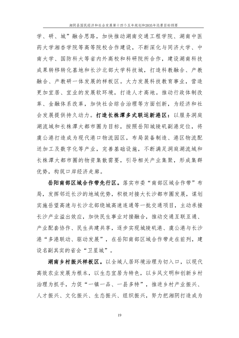 湘阴县“十四五”规划纲要和2035年远景目标纲要