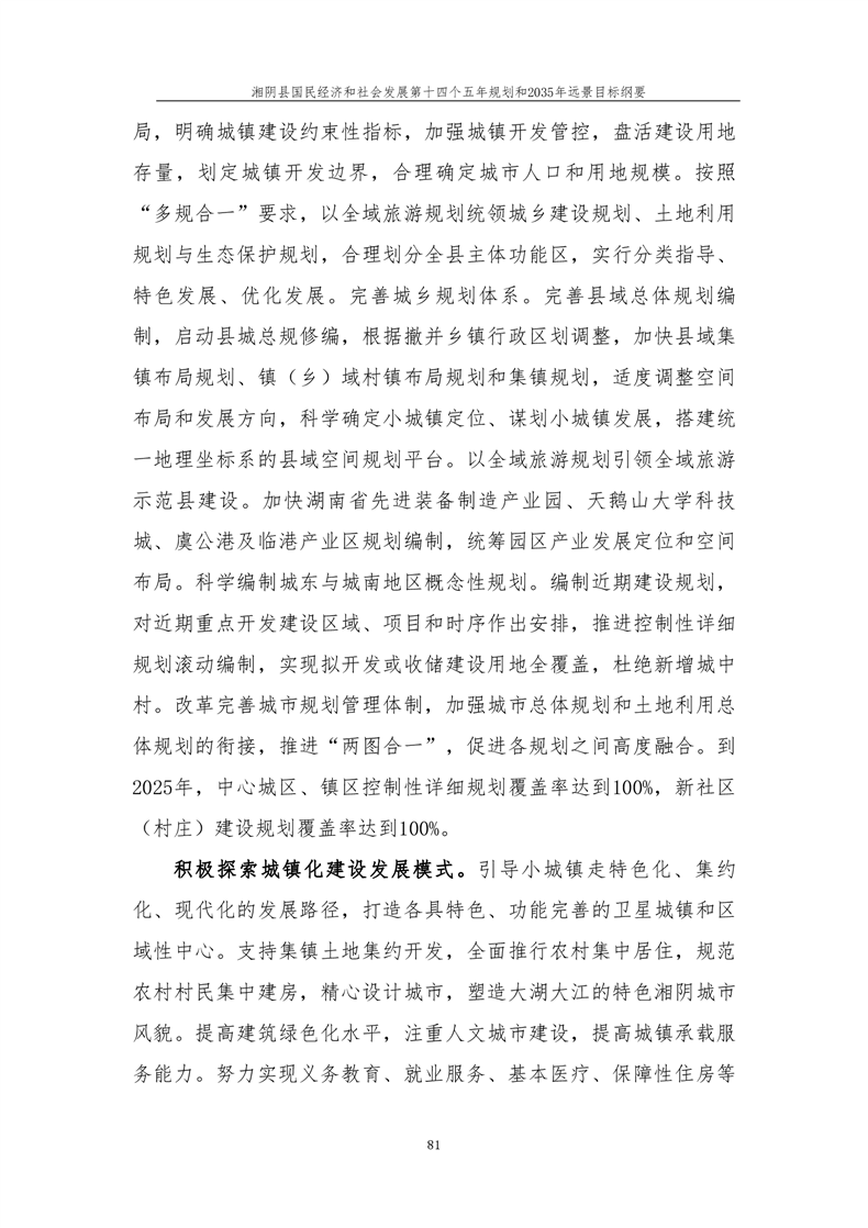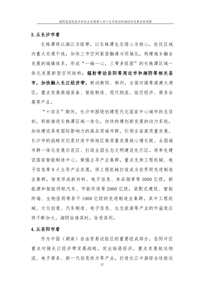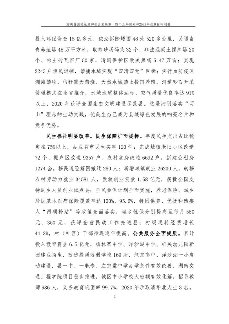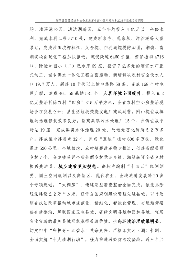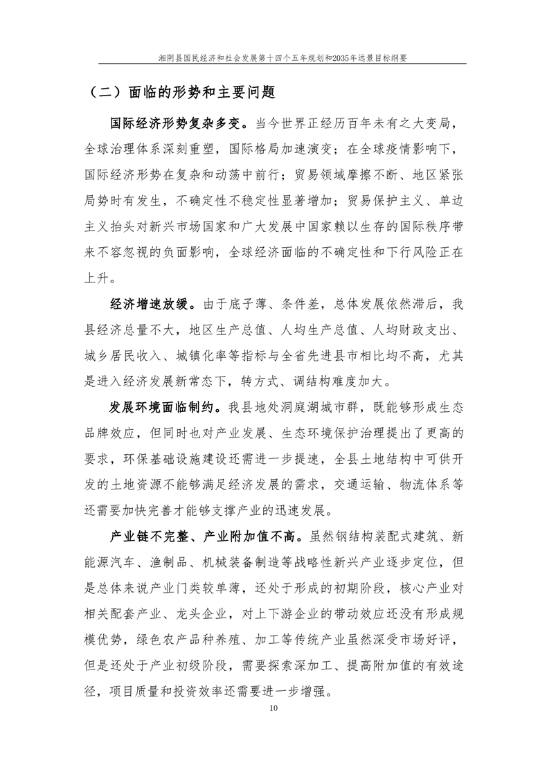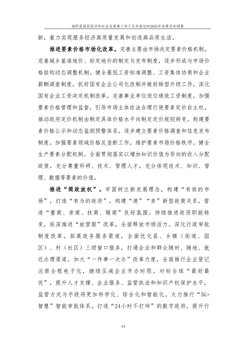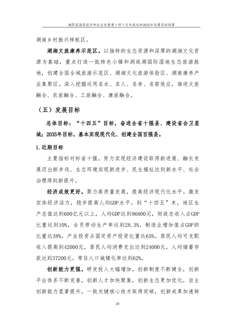 湘阴县“十四五”规划纲要和2035年远景目标纲要