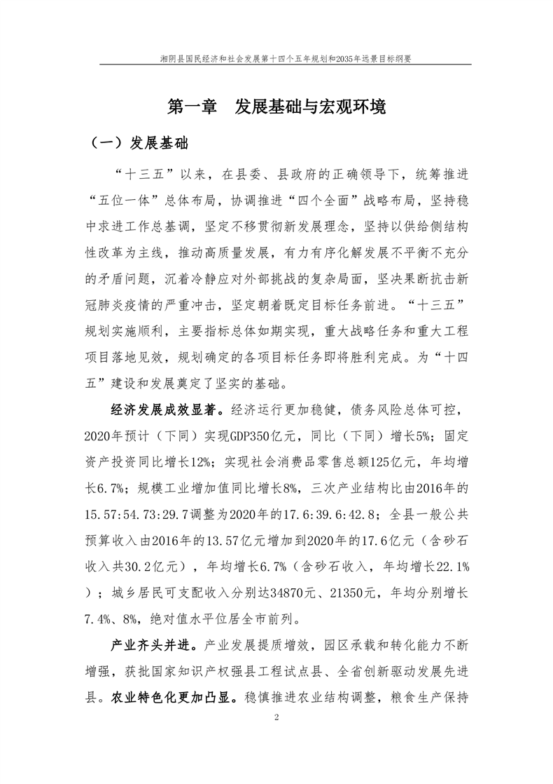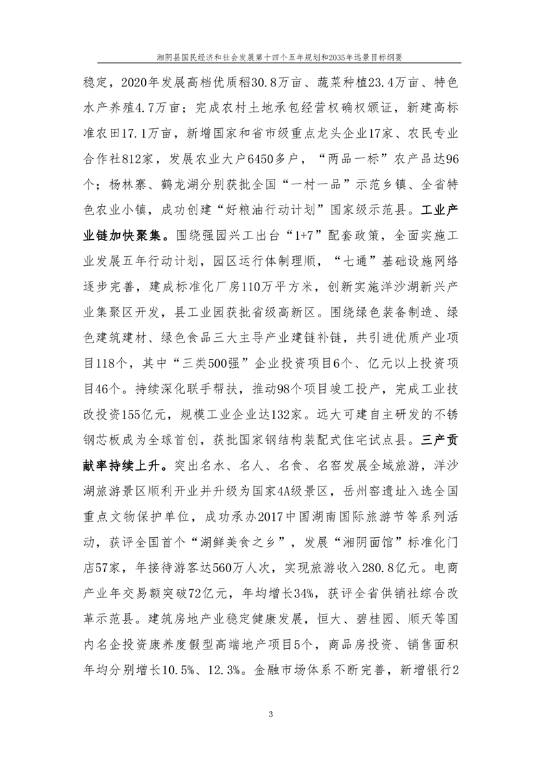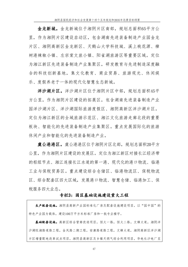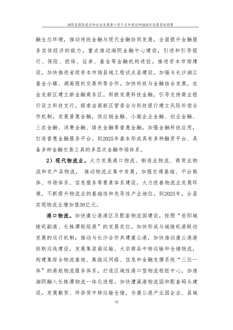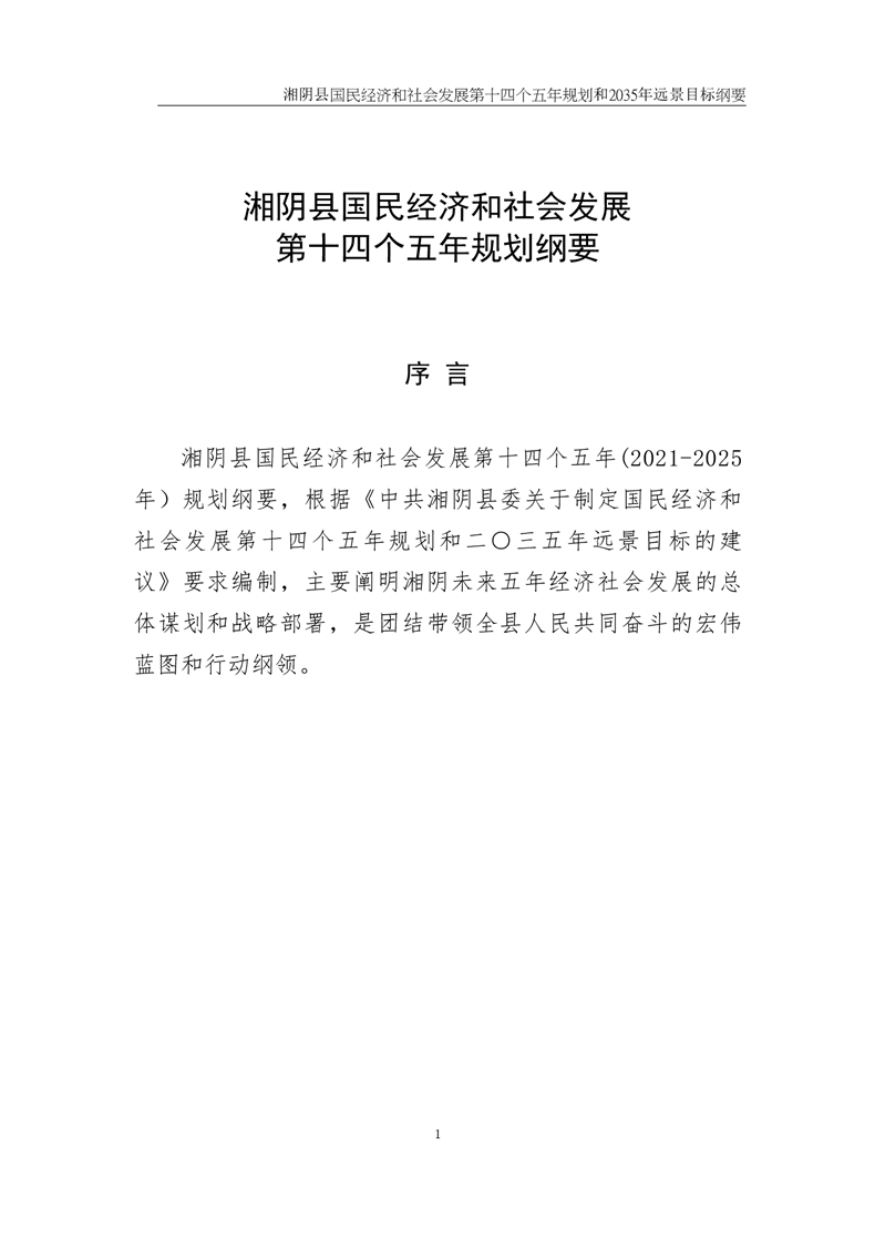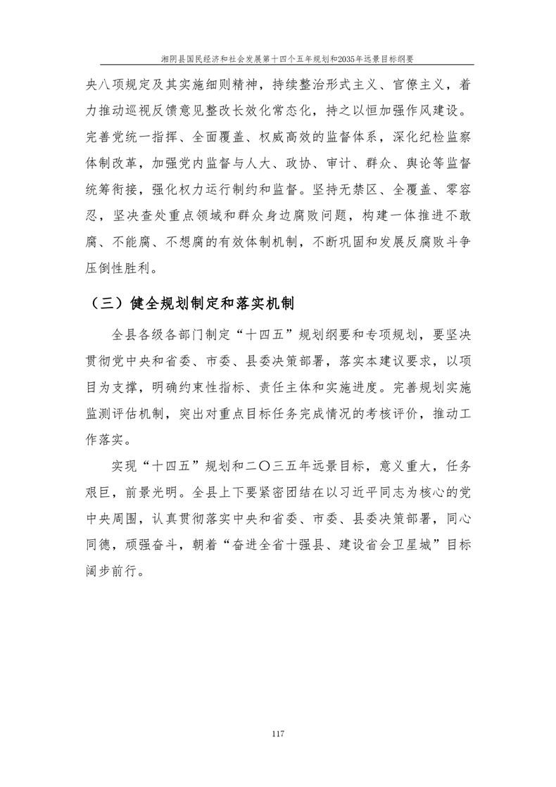 湘阴县“十四五”规划纲要和2035年远景目标纲要