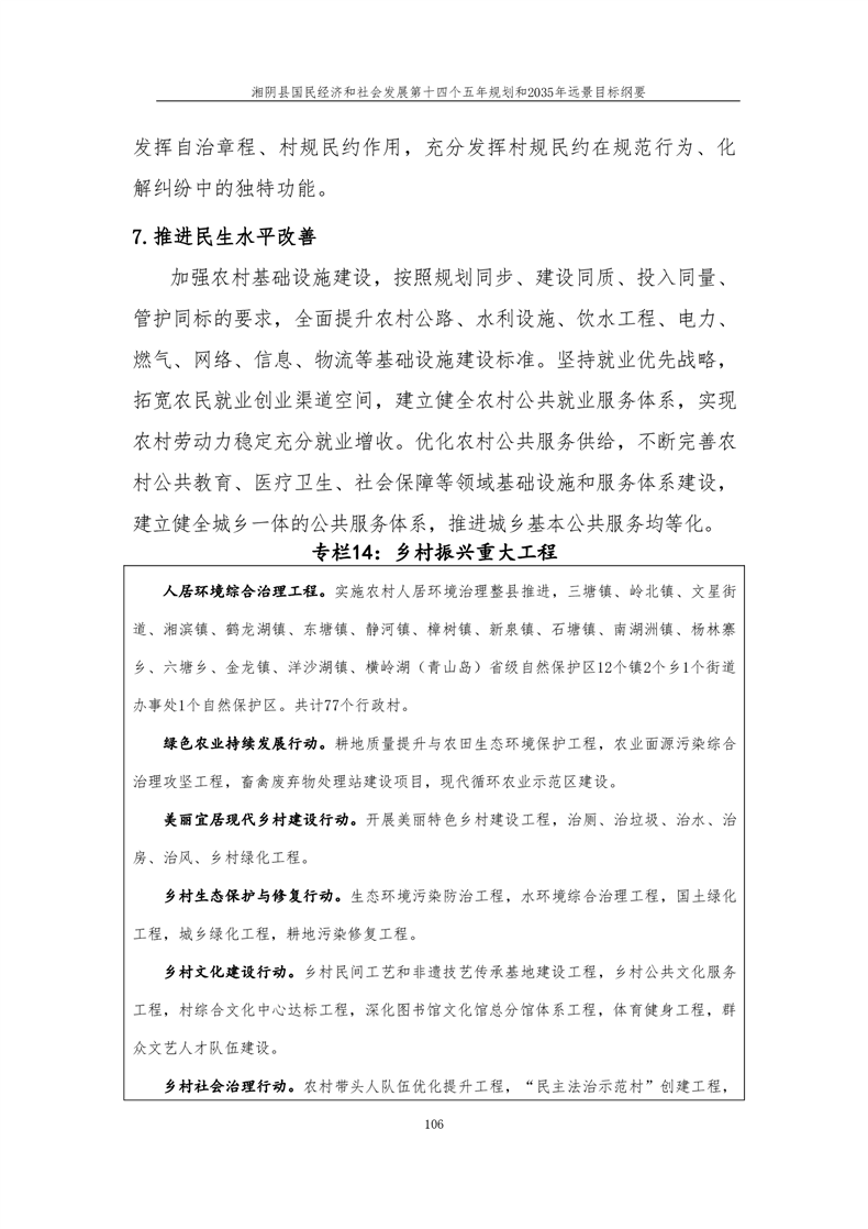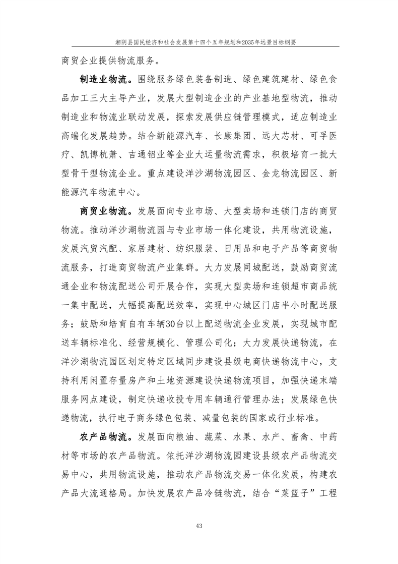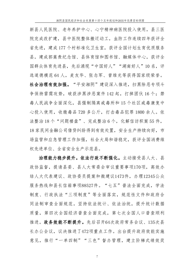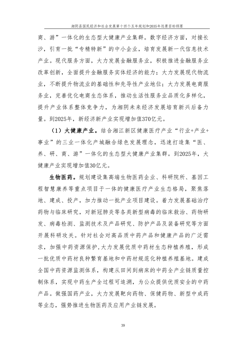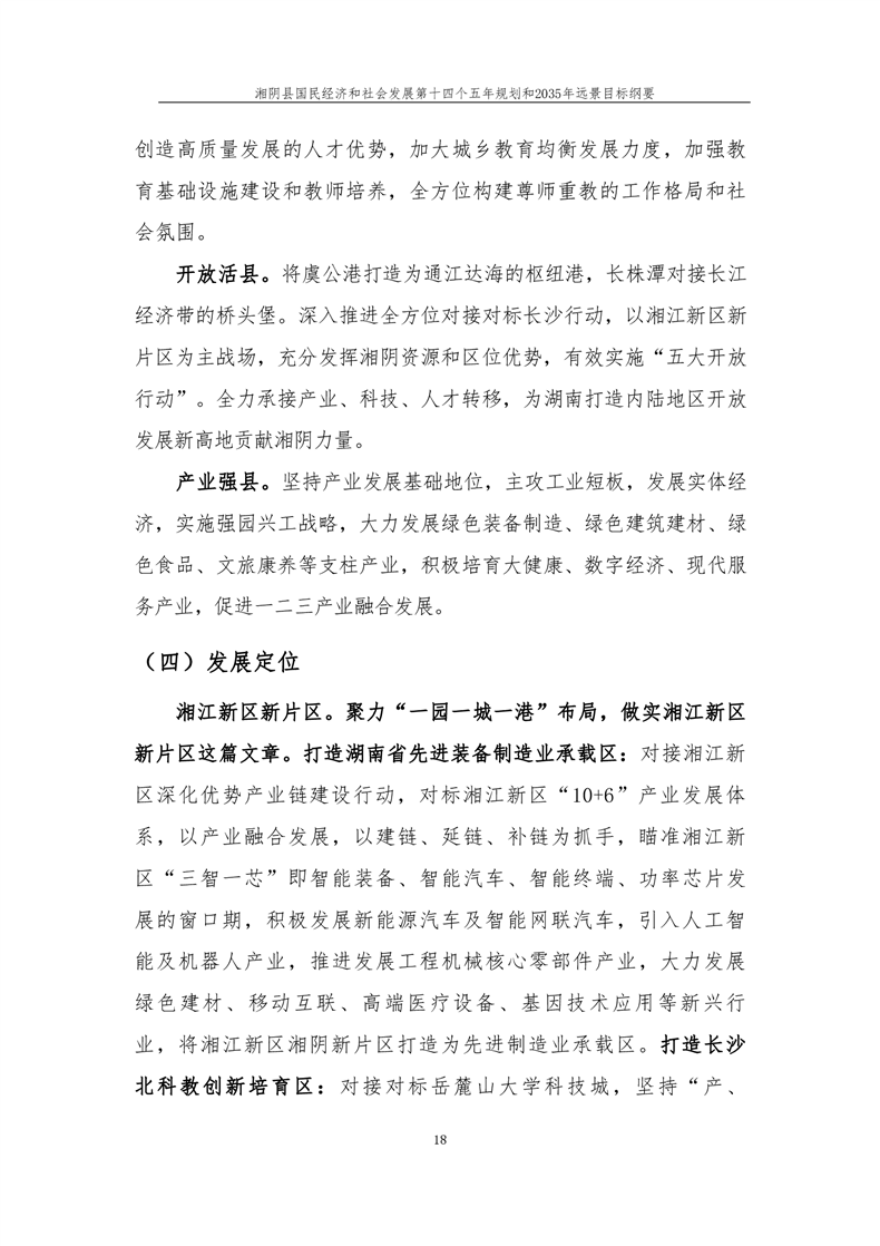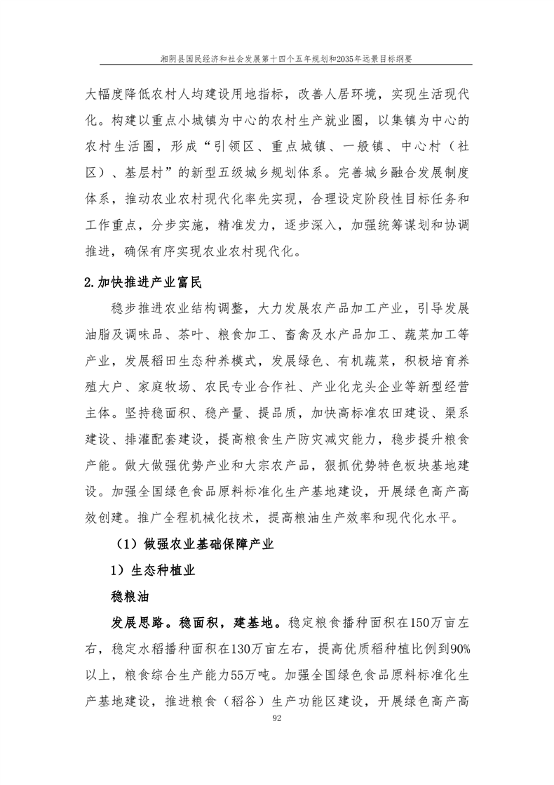 湘阴县“十四五”规划纲要和2035年远景目标纲要