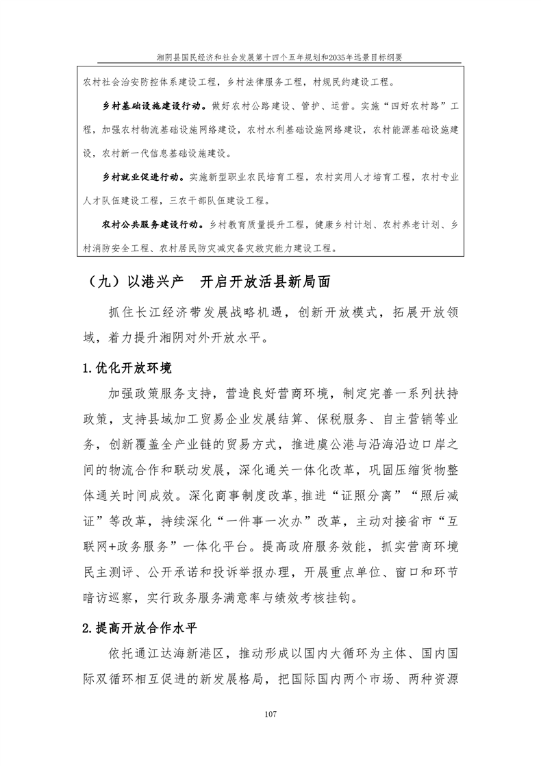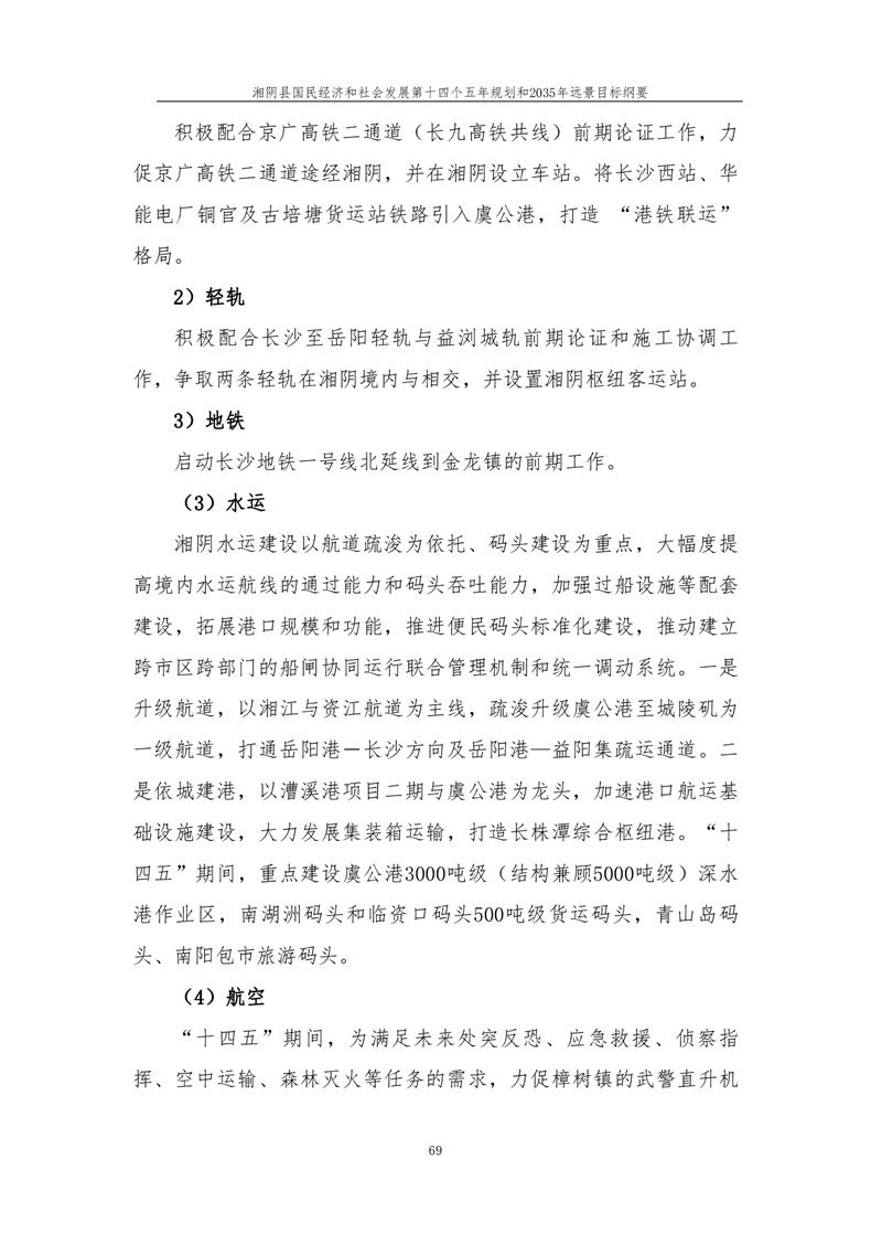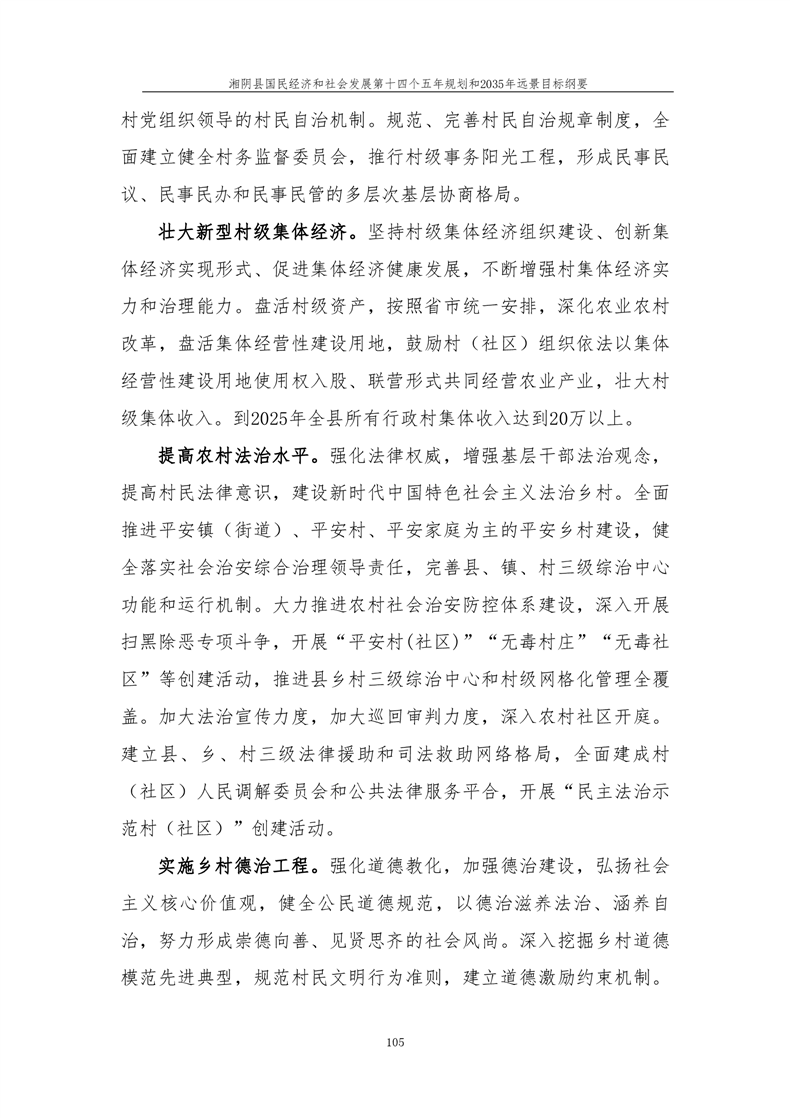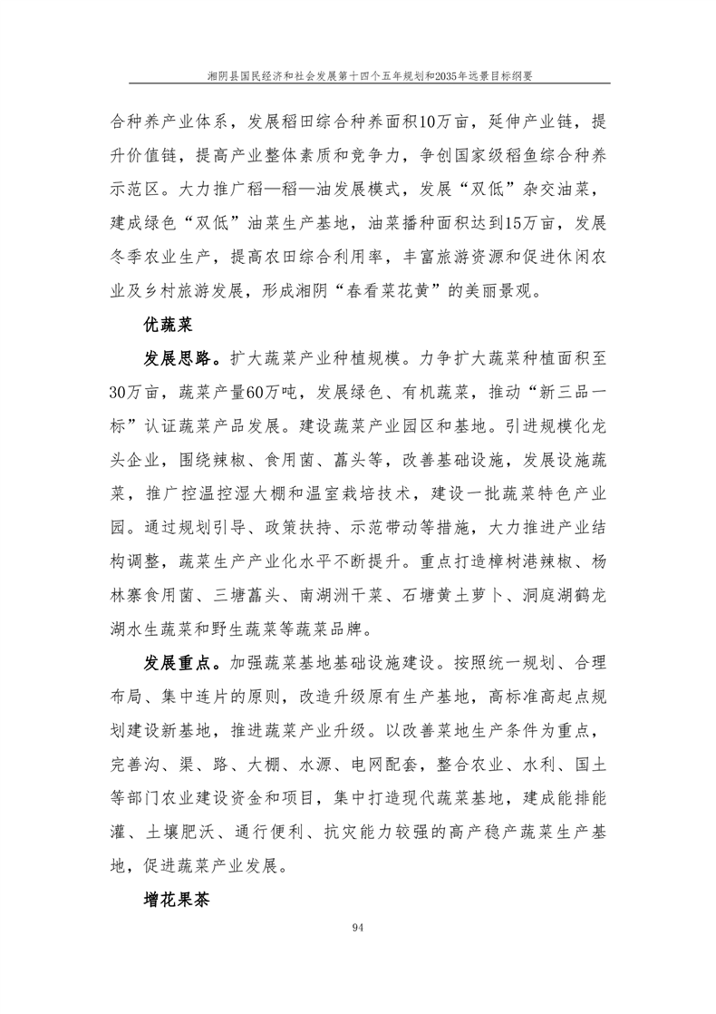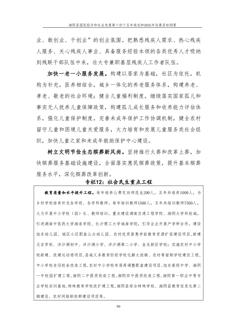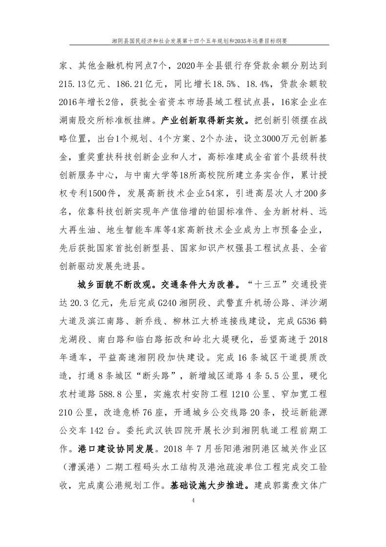 湘阴县“十四五”规划纲要和2035年远景目标纲要
