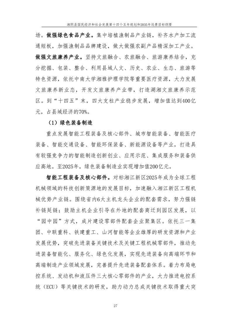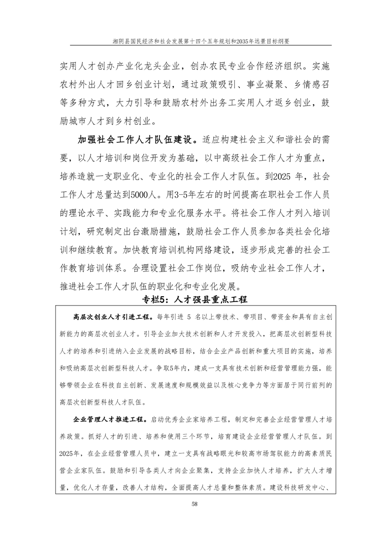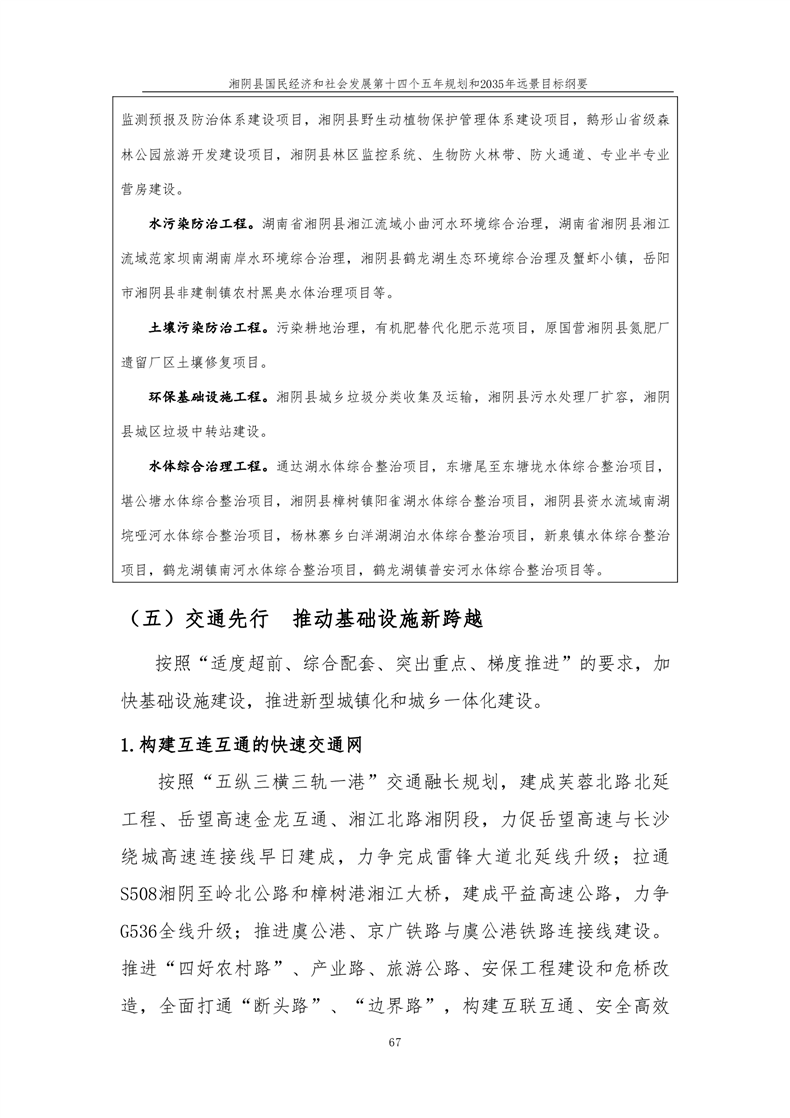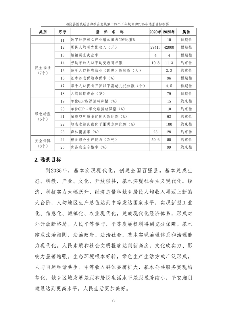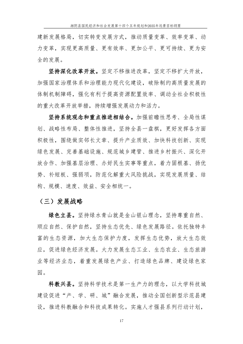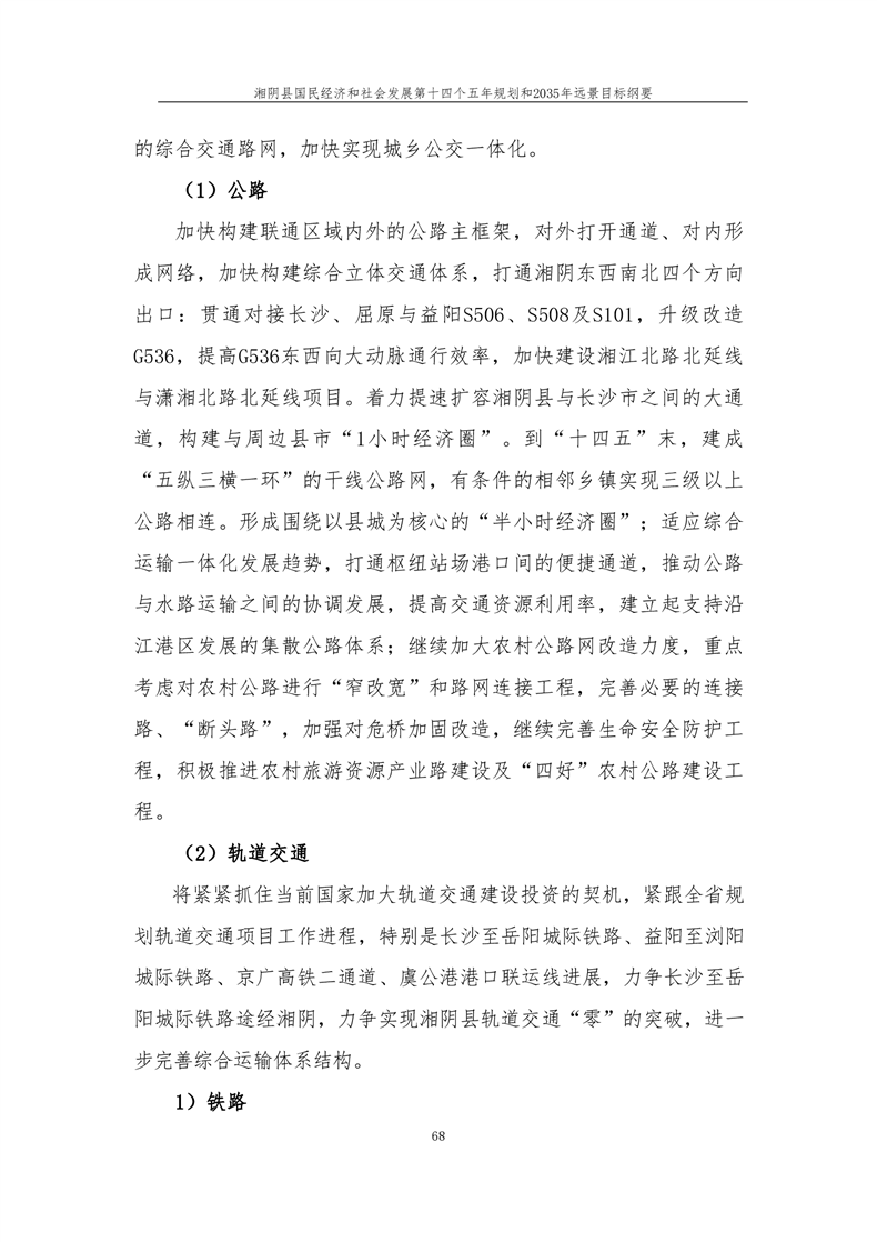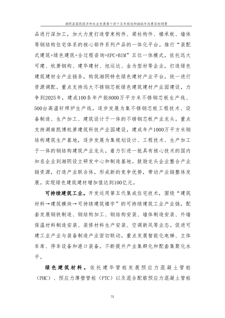 湘阴县“十四五”规划纲要和2035年远景目标纲要