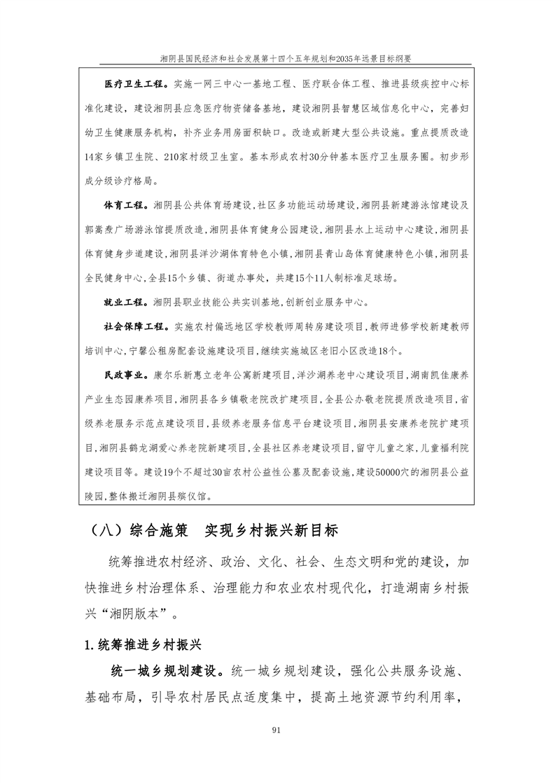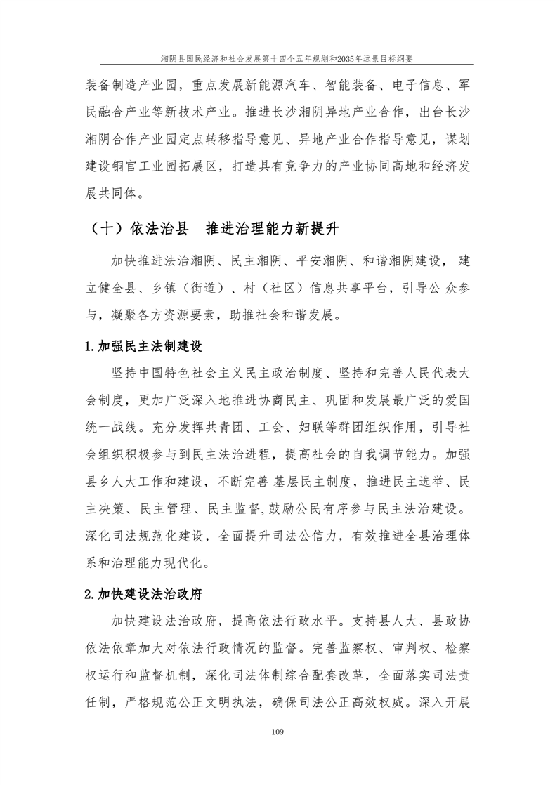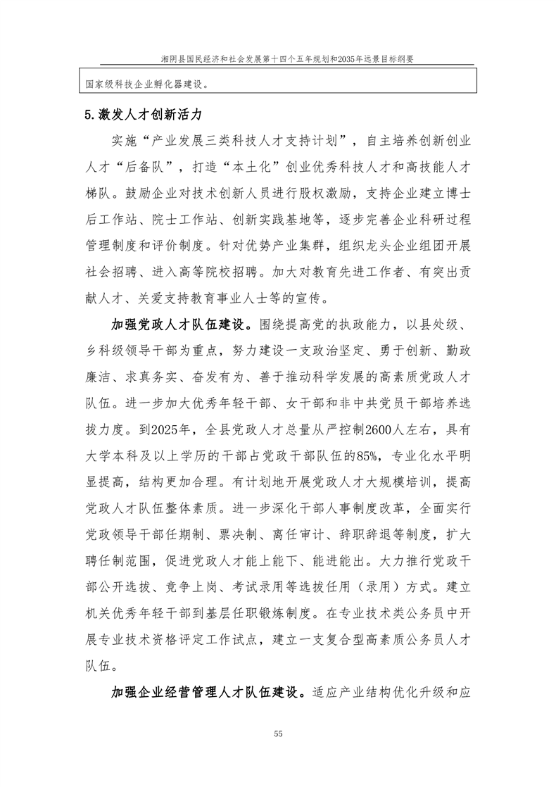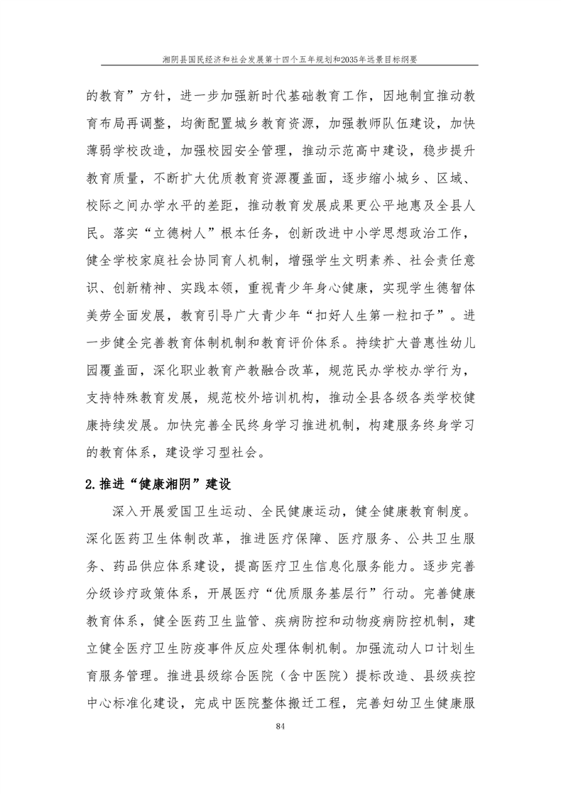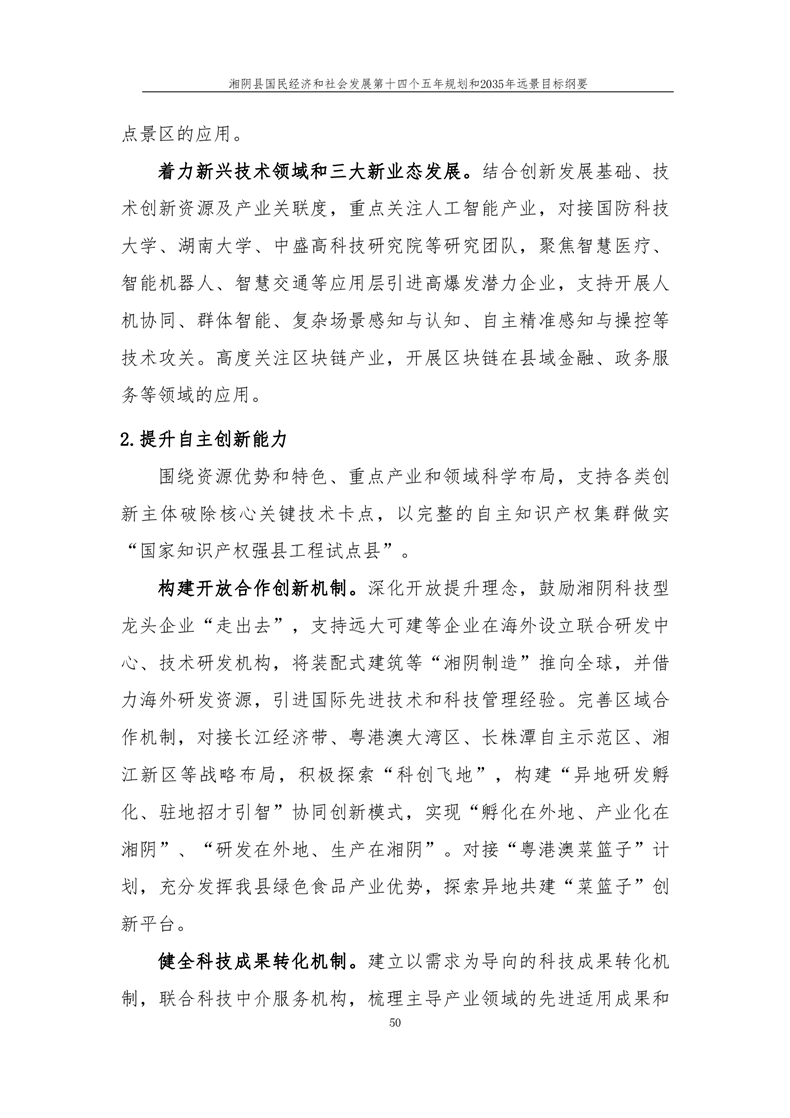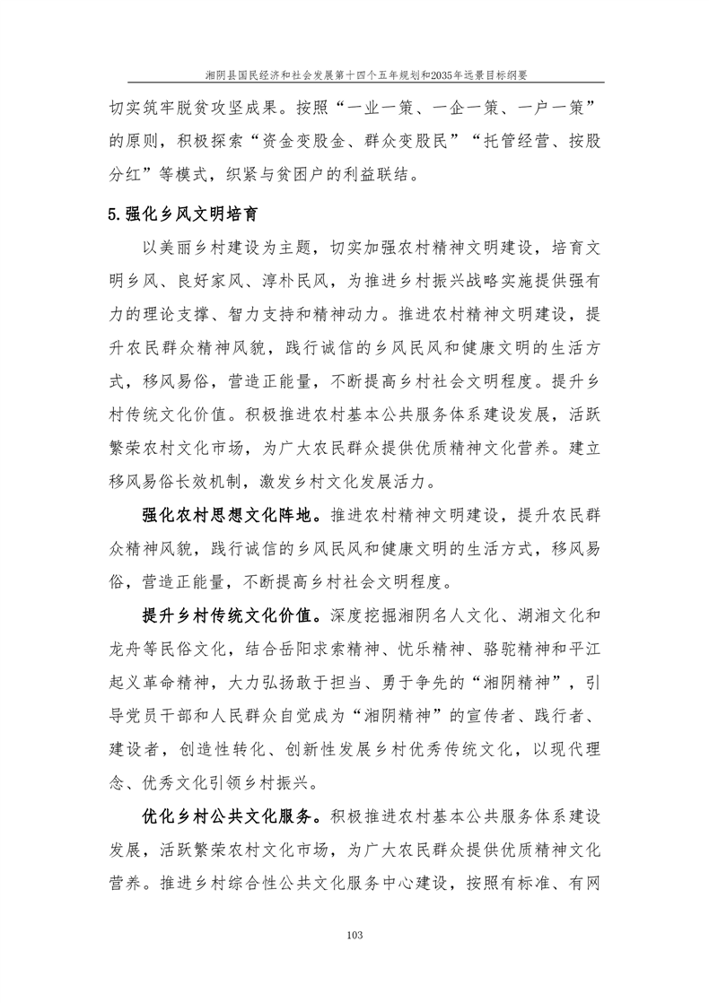 湘阴县“十四五”规划纲要和2035年远景目标纲要