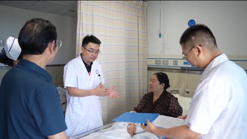 在县人民医院神经内科病房内,神经内科主任高兆玉正在对病人进行出院指征检查。1周前,夏女士因头晕不适,且在社区诊所治疗无果后来到县人民医院就诊。经检查,晏女士确诊为脑内动脉瘤。