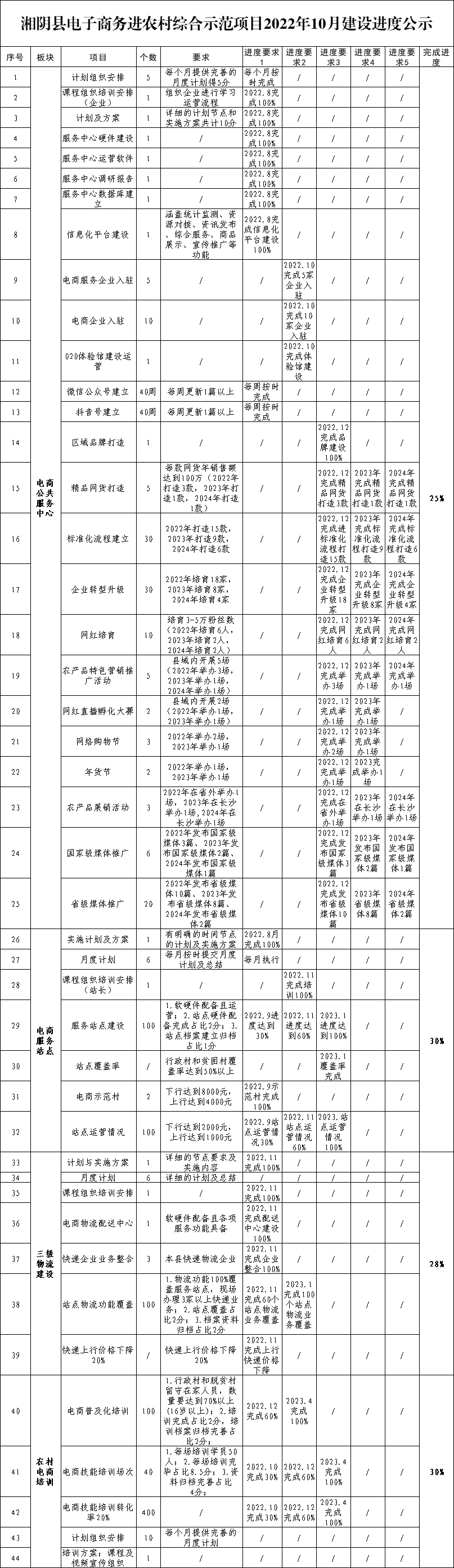 湘阴县电子商务进农村综合示范项目2022年10月建设进度公示