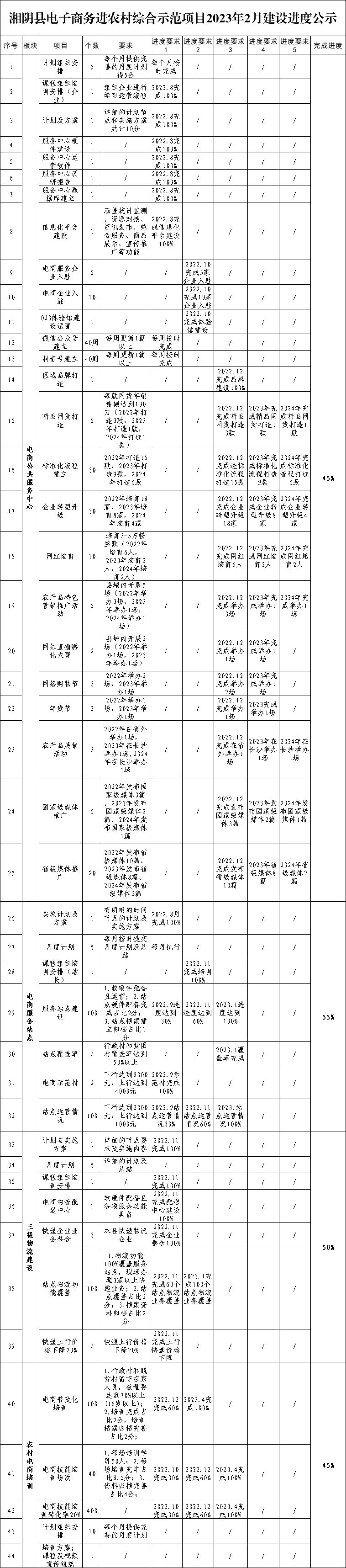 湘阴县电子商务进农村综合示范项目2023年2月建设进度公示