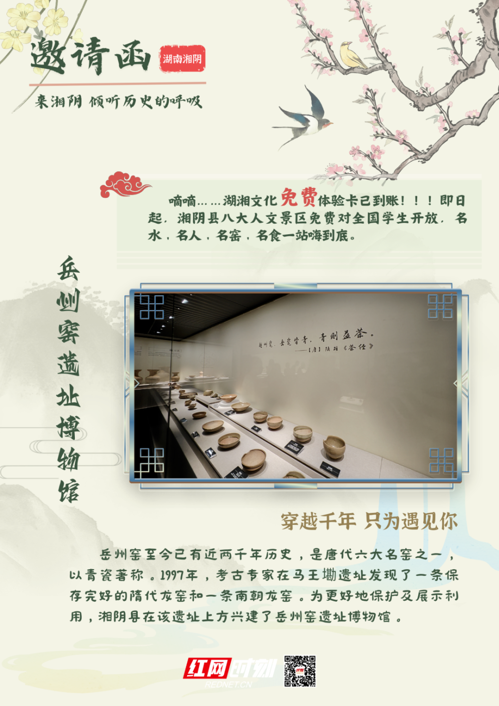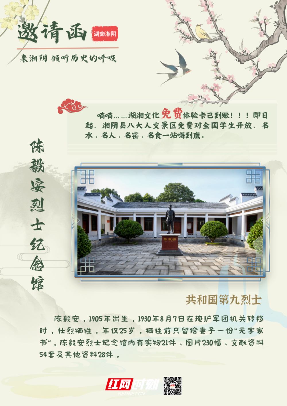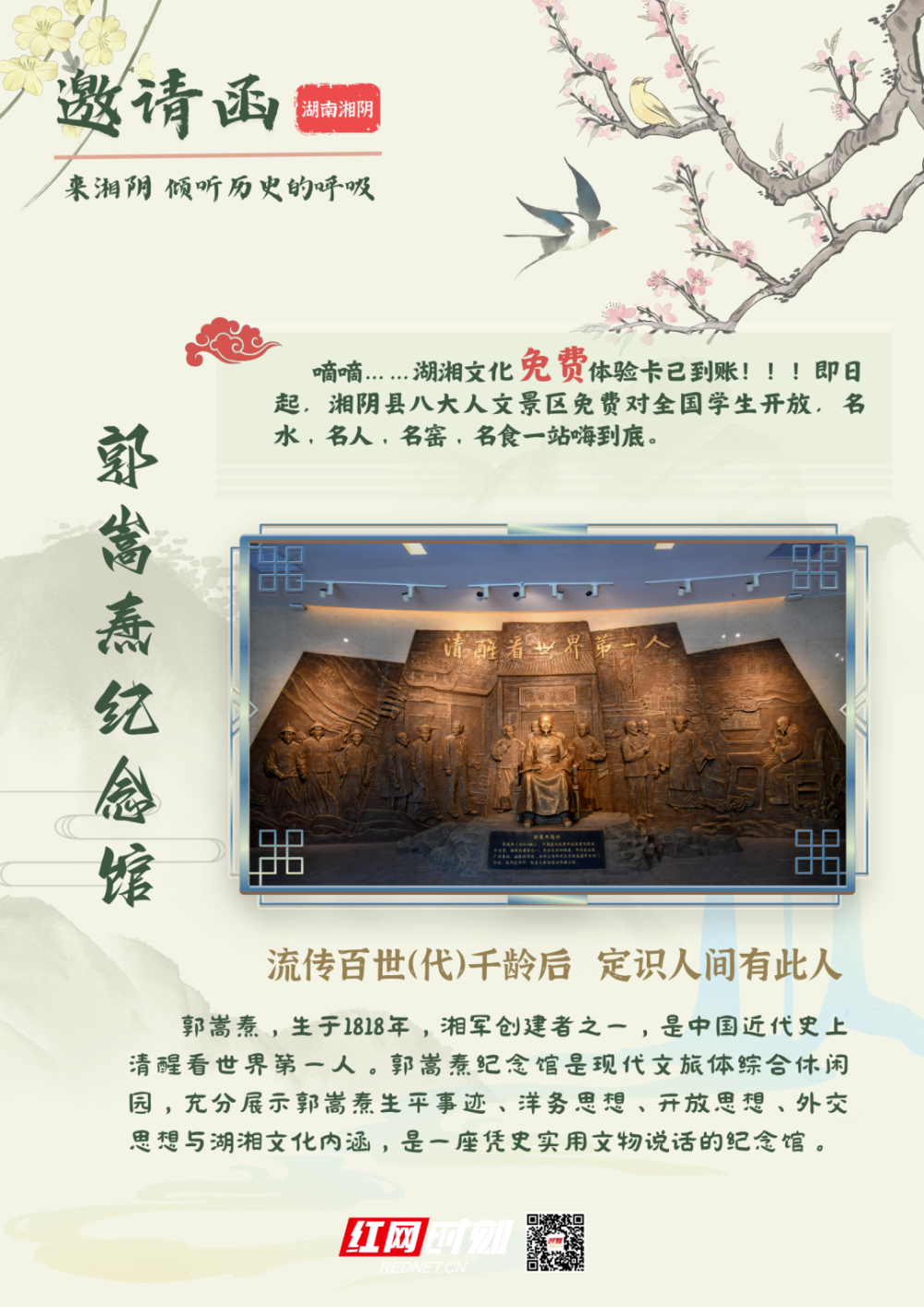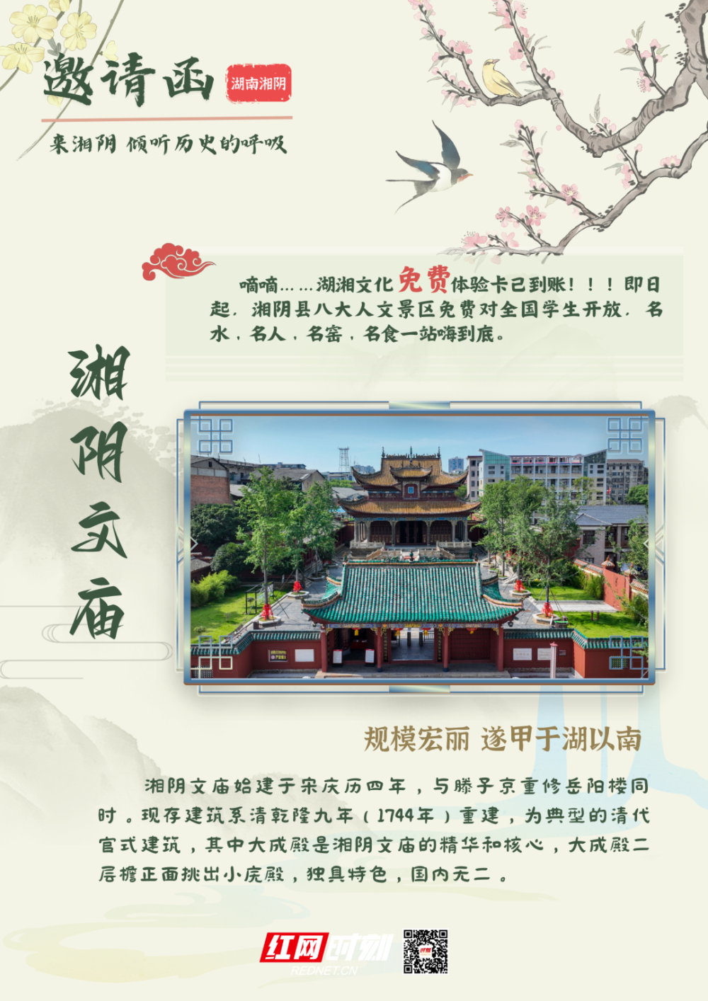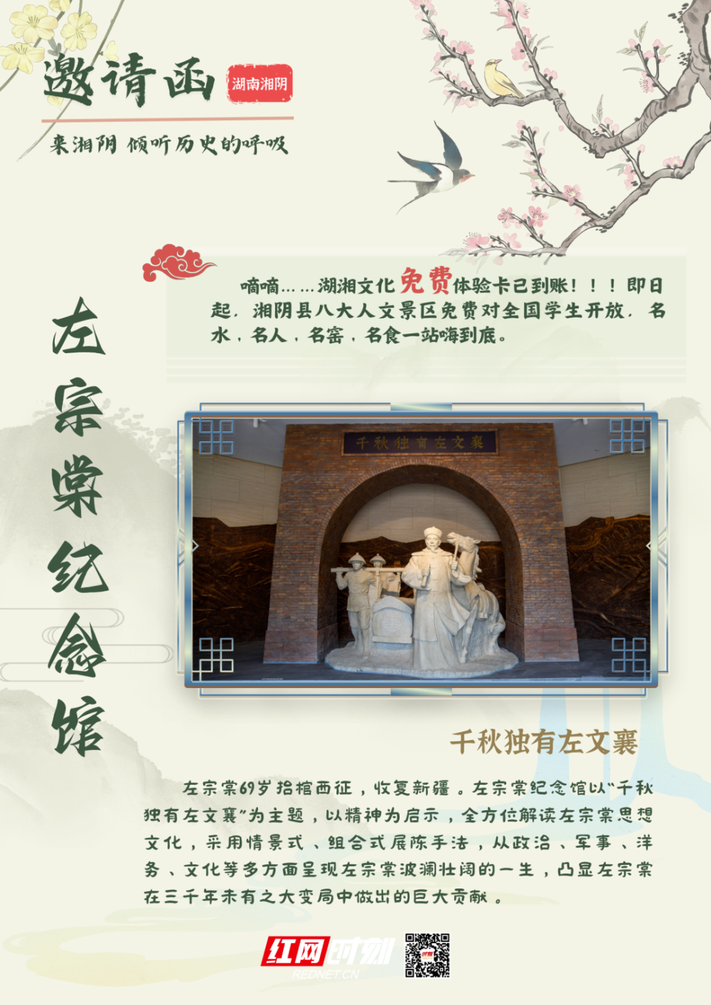 滴滴…… 湖湘文化免费体验卡已到账 湘阴八大景区面向全国学生免费开放