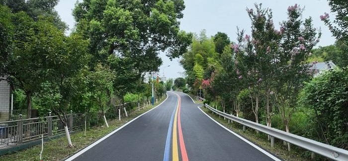 “其实,道路最初设计的颜色就是黑与白。为更好起到旅游带动作用,我们在部分路段试刷了彩色路,没想到被频频点赞,所以就有了这条‘彩虹路’。”湘阴县交通运输局负责人介绍,“天鹅山旅游公路”并不只是在道路中间简简单单画上彩虹分隔线,而是一条生态、文化、旅游、富民的相融之路。