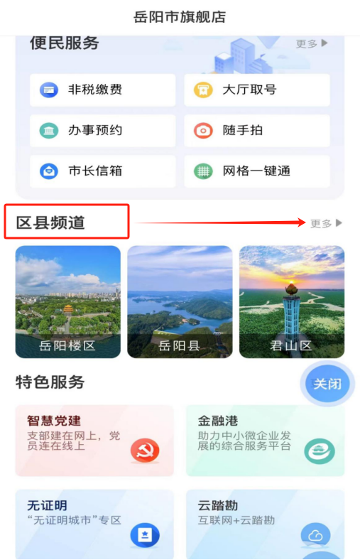 第三步:打开“市州旗舰店”页面,点击进入“岳阳市”。