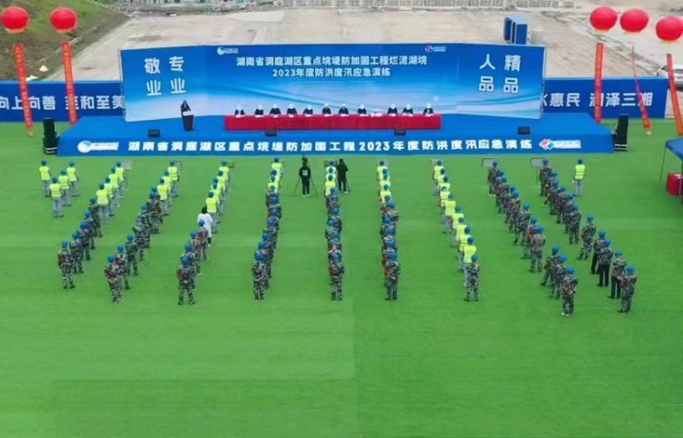 3月27日,2023年度防洪度汛应急演练活动在洞庭湖区重点垸堤防加固工程烂泥湖垸举行。演练模拟湘江、资江大堤超警戒水位和大堤发生管涌渗漏现象的应急救援情景,通过风险研判、预警发布、人员撤离、应急处置4个关键环节,重点检验各参建单位防汛抢险救灾实战水平和应急处置能力。演练过程组织严密、配合有序,从现场布点到科目设置,从防汛流程到应对举措,从参演力量到机械设备,均体现了“围绕实战、突出重点、注重实效”的总要求。