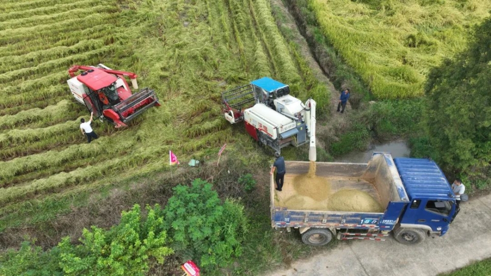 今年我县大力推广高标准农田建设和智慧田间管理系统应用,全县千余块巴掌田实现整合改造,打造出更多适应机械化作业的标准化大田,早中晚稻等粮食作物实现了从种到收机械化作业,每个环节较过去节省了三到五天,每亩降低成本约100元,全县机械化率较去年整体提升了1.5个百分点,实现了粮食增产、农民增收、农业增效。“由于田间管理到位,病虫防控好,预计我县中稻单产在560公斤以上,比去年增产40公斤左右。”县农业农村局种植业管理股任双春说道。
