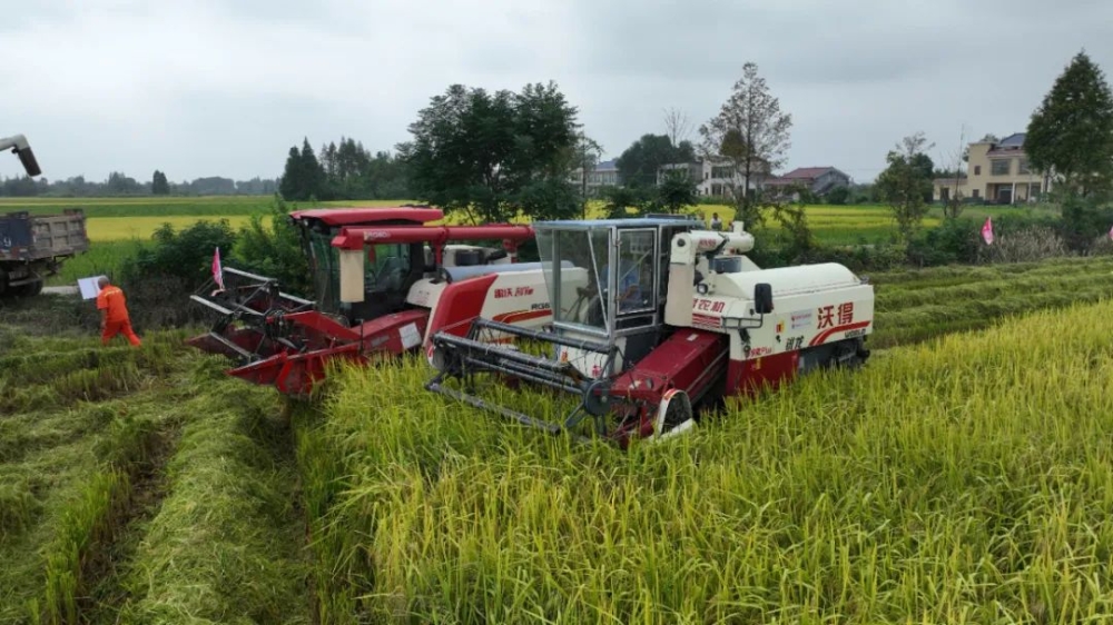又“稻”一年丰收季,我县近二十五万亩稻田也换上了“黄金衣”,微风拂过,田野泛起层层金色波浪,农户们趁着晴好天气,利用机械抢收中稻,确保粮食颗粒归仓。