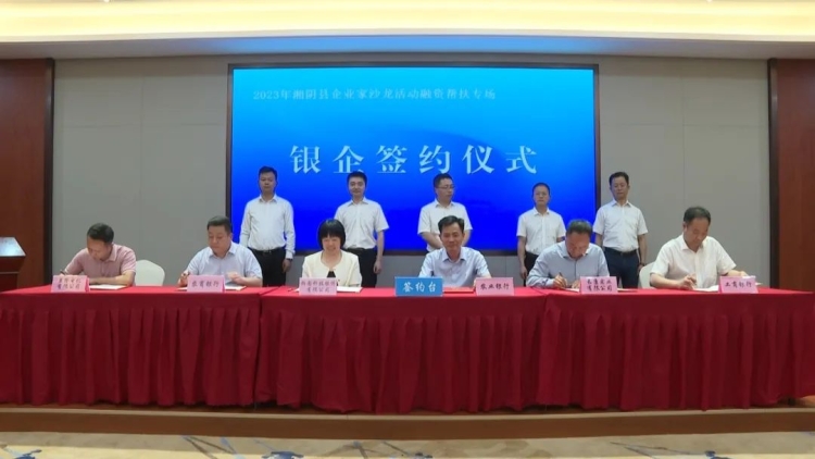 湘阴“发展六仗”怎么打?县委县政府积极排兵布阵,激活一池春水。4月19日下午,我县组织开展2023年企业家沙龙活动融资帮扶专场并举行政银企战略合作签约仪式。10家银行机构、10家民营企业负责人汇聚一堂,共商融资、共谋发展。现场签订10个融资项目,贷款意向金额达6亿元。县长刘世奇,建设银行岳阳市分行党委书记、行长陈海龙,农业银行岳阳分行党委书记、行长司马新义,县级领导罗奇、陈忠、焦洪桥,县政府办主任王锐和相关部门单位负责人共同见证。