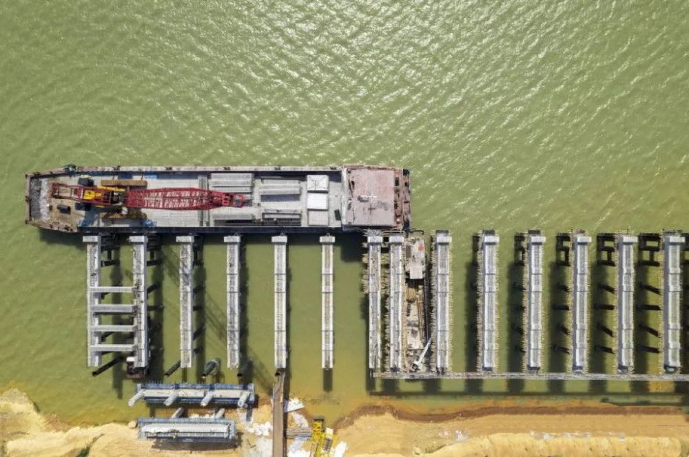 “全省十大基础设施项目”——虞公港再迎新进展!7月13日,随着湖南省港务集团虞公港一期工程上游泊位的第一跨预制纵梁,稳稳“嵌入”码头下横梁,标志着该项目自此开启码头平台上部结构施工阶段,整体项目进入快速施工期。两个月后,码头平台将完成施工;预计今年年底,虞公港一期水工部分将全面完成。