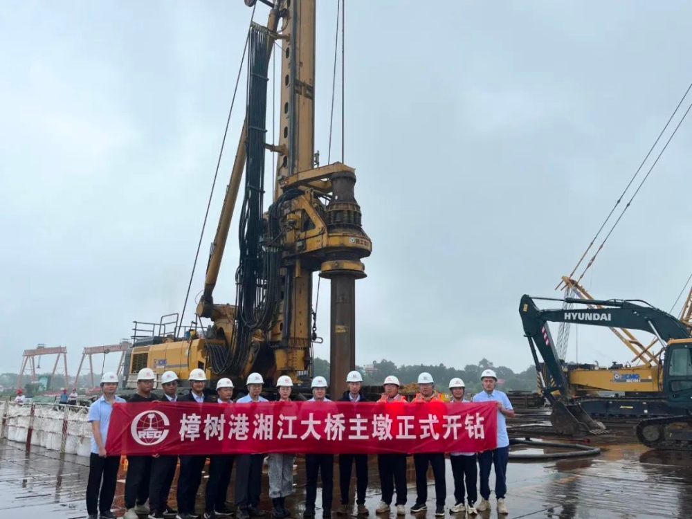 奋进2023·项目大比拼丨湖南樟树港湘江大桥首个主墩正式开钻