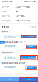11.个人信息系统会自动获取,只需要上传所需的材料,填写好申请表点击“下一步”即可完成申请