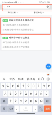 8.在搜索栏搜索“动物”等关键词,点击要办理的事项 |