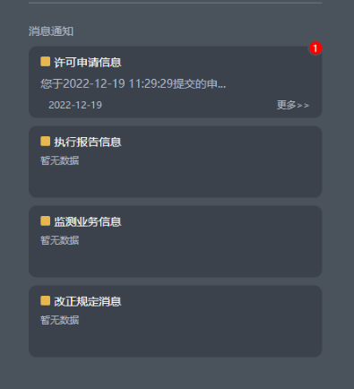 登录后,在消息通知可查看业务进度,链接网址:http://permit.mee.gov.cn/permitExt/defaults/default-index!getInformation.action