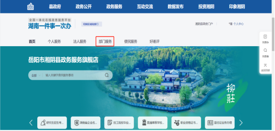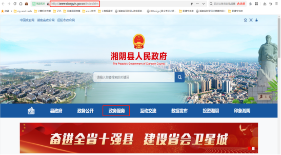 1. 在浏览器钟输入该网址“http://www.xiangyin.gov.cn/index.htm”打开,再点击“政务服务”
