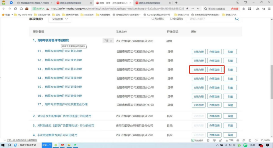 5. 点击“在线办理”,也可以查看相关的“办事指南”
