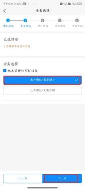 11.选择办理“林木采伐许可证”,点击“下一步” |
