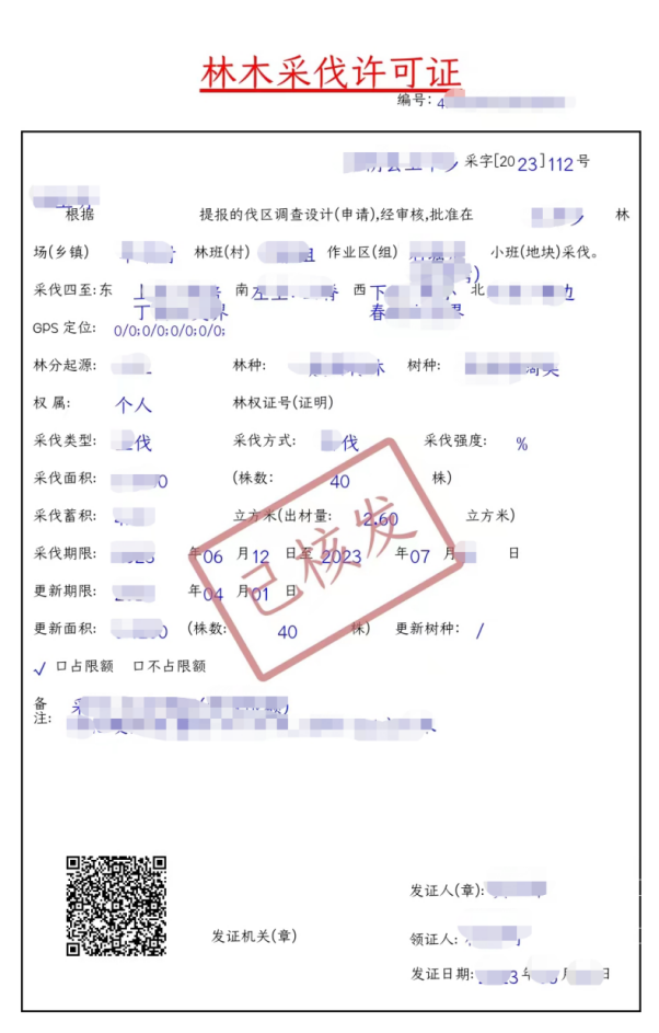 一、事项名称:林木采伐许可证及产地检疫合格证一件事一次办