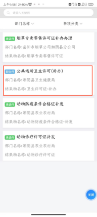 8.点击“公共场所卫生许可(补办)” |