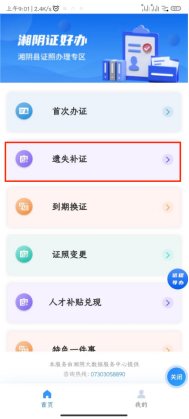 7.点击“遗失补证” |