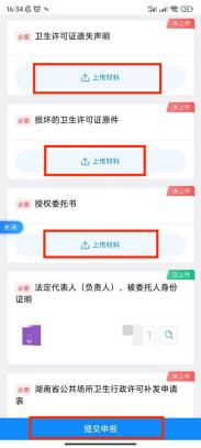 卫生许可证损坏的,提交损坏的卫生许可证原件(拍照)。 |