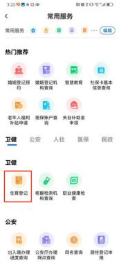 3.点击卫健“生育登记”图标 |