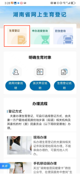 网上生育登记(《湖南省生育登记回执》)