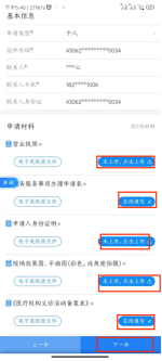 13.点击“上传材料”、“在线填表”,将资料补充完整,点击“下一步”即可提交申请 |